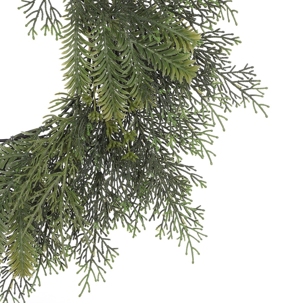 Our 18" Faux Green Pine Plant Garland is beautiful and ready to hang. It features a metal base and the pine tree measures 8-10 inches. Designed with a wire base, this wreath features pine trees and various other plants. Recommended for doors, walls or windows. The 18" Faux Green Pine Plant Garland is a beautiful decorative piece that will adorn your home or front door all year round. Pair this wreath with other products in our collection to add a fresh touch to your home or office. Comes fully assembled and ready to hang. 18" Faux Green Pine Round Garland for Doors, Walls Metal Base Recommended for Walls, Windows or Doors Plant Type: Pine Color: Green Size: 18" Weight: 380g