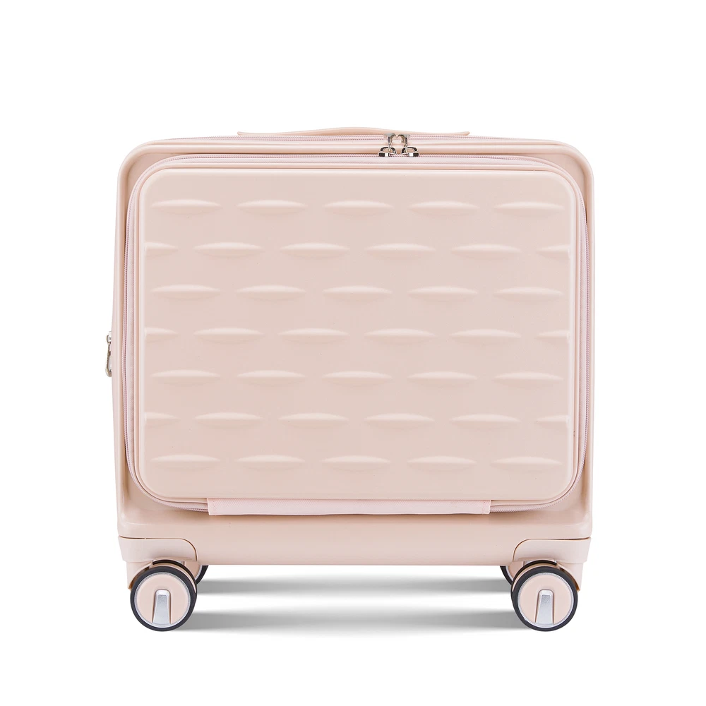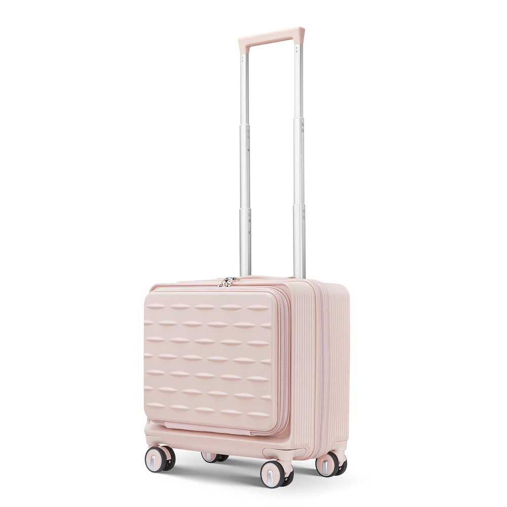 Specification Product Information Item Code:W2098P183687 Product Type:General Item Product Name:18" Carry On Luggage with Front Open Door &Laptop Interlayer, Hard Shell Suitcase Built-In TSA Luggage Lock, Hardside Lightweight PC Travel Suitcase for Women Men with Spinner Wheels Airline Approved Place of Origin:China Main Color:Pink Main Material:PC Product Dimensions Assembled Length (in.):Not Applicable Assembled Width (in.):Not Applicable Assembled Height (in.):Not Applicable Weight (lbs.):Not Applicable Package Size Length (in.):16.00 Width (in.):10.00 Height (in.):16.00 Weight (lbs.):11.00 Product Features 【TSA Combination Lock】 TSA customs locks allow for more security and privacy during the journey, with the ability to perform non-destructive opening and inspection. 【Front Opening Compartment】This suitcase has a front compartment to categorize your computer or iPad and passport registry items for easy access, easy to separate electronic devices from clothing. 【Adjustable & Sturdy Handle】Ergonomic 3-step telescoping handle allows you to maneuver in tight spaces and provide effortless movement. Smooth ups and downs for more comfortable carrying. 【360°Double Wheels】The luggage rollers maneuver very smoothly whether the wheels are on the ground or airport floors. Reduced friction and shock absorption. 【Packaging】】Carry on Luggage Set include: 1*Crossbody Bag (Black), 1*Cosmetic Bag(White), 1*Carry-on Luggage (18 inch )