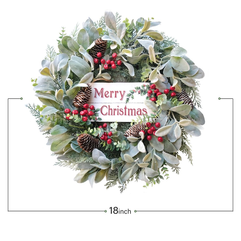 The wreath is made of high quality material that will never rot and will always be alive. The wreath is durable and will last for a long time, add a festive atmosphere to your home every day. As decorative hanging Wreath for home, nice household decoration is unique and also a perfect decor gift for your friends and lovers. It's the best Winter Christmas decor gifts. 🎄【Christmas Wreath】The Artificial Winter Wreath is made by Berries, Pine cones and eucalyptus leaves. The base is a natural vine. This Christmas Wreath is natural and realistic, and create a festive atmosphere of Christmas. 🎁【High-quality Material】Crafted with sturdy, high quality materials, this artificial hanging wreath is designed to capture the charm and colors of the winter season year after year. ⛄【Unique Design】The Christmas wreath stay natural tone and create a comfortable, warm and relaxed atmosphere. It gives you the feeling of being in the forest and really listening to nature. 🔔【Christmas Wreaths For Front Door】The wreath make great addition to your Christmas and Holiday Decoration. This Beautiful Wreath is great to decorate home, , office, and classroom decoration,and ideal for the front door, wall, fireplace, window. 🎶【Service 】All our products come with a . If there is any problem after receiving the product, please us at the first time and we will make sure to give you a perfect answer.