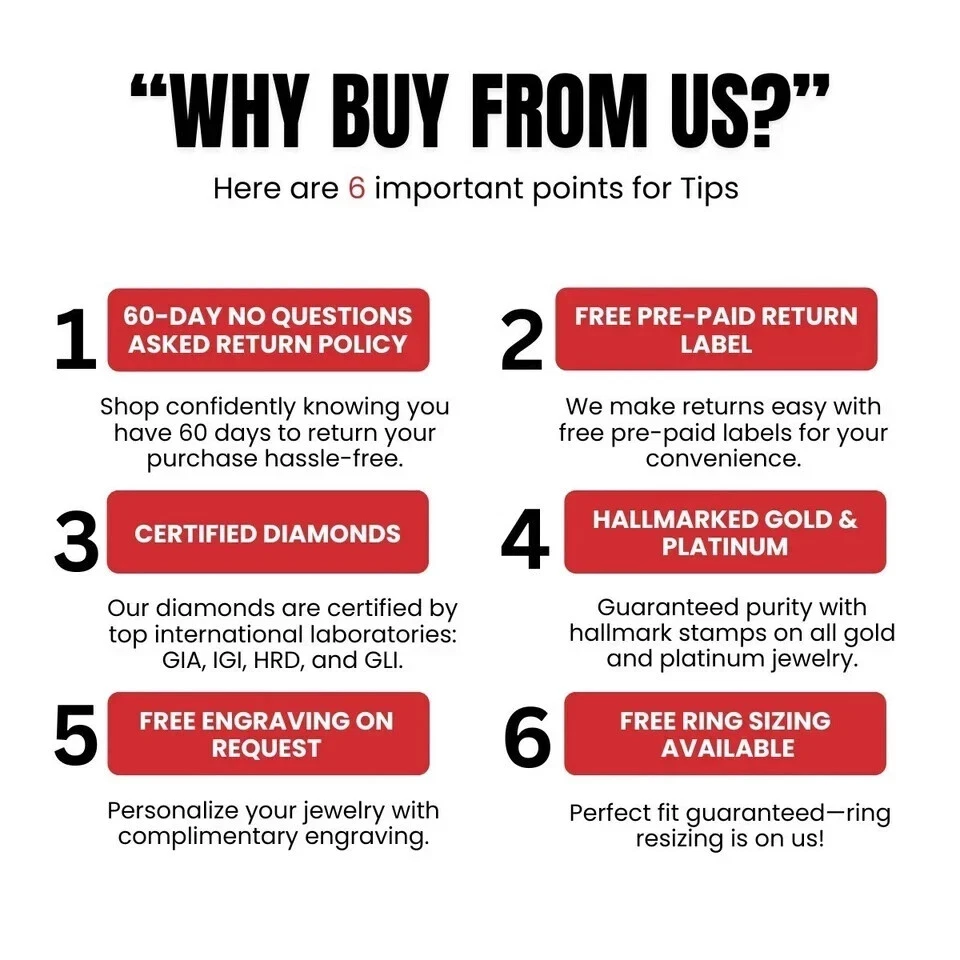Diamond43 VISIT THE Diamond43 EBAY STORE TO VIEW ALL ITEMS ABOUT US CUSTOMER FEEDBACK CONTACT US Diamond43 Gold Diamond Mens Band Octagon Cut 1.50 Ct IGI Lab Grown 18K White Rings 9 10 11 check_circle 60-Day No Questions Asked Return Policy check_circle Free Pre-Paid Return Label check_circle Certified Diamonds check_circle Hallmarked Gold & Platinum check_circle Free Engraving on Request check_circle Free Ring Sizing Available Specifications Shape Round Occasion Anniversary,Birthday,Christmas,Engagement,Father's Day,Valentine's Day Main Stone Color NA Metal White Gold Secondary Stone NA Main Stone Diamond Personalize Yes Ring Size 12.5 Main Stone Treatment Not Enhanced Department Men Main Stone Shape Octagon Cut Style Band Base Metal Gold Handmade Yes Main Stone Creation Lab-Created Seller Warranty Yes Signed Yes Cut Grade Excellent Color NA Sizable Yes Material NA Total Carat Weight 1.5 Certification IGI Diamond Clarity Grade Very Slightly Included (VS1) Setting Style Solitaire Brand Diamond43 Type Ring Metal Purity 18k Customized Yes Colored Diamond Intensity NA Available ring Sizes 4-12(Half sizes are available as well) Diamond Color Grade F Theme Beauty Country/Region of Manufacture India Country of Origin India Wholesale Yes Personalization Instructions 14/18K Yellow/Rose/White Gold and 950 Platinum options are available. All common ring sizes are available. Please contact us for any further customization request. About Diamond43 Crafting a Legacy of Artisanal Jewelry We specialize in any type of jewelry that you can imagine. You imagine it and we will make it exactly the same. When you work with our company the only limit there is, is your imagination. We have over 6 decades of experience in Jewelry Manufacturing. We also deal in wholesale and export of 14K,18K and Platinum Jewelry handmade and machine made Gold and Platinum Diamond Jewelry. Best Quality, Certified and Guaranteed Low Prices. Shipping Policy Description Payment Policy Description Return Policy Description Shipping: "Experience swift and secure shipping worldwide! Choose from shipping options like FedEx, USPS, or Registered Post. Enjoy Free Standard Shipping on eligible products, making global delivery convenient." Customs Note: "International shoppers, take note! Some countries may impose additional customs fees, especially in Europe. Buyers are responsible for these charges. For more details, please check with local customs authorities. If returning an item, buyers are responsible for return shipping duties levied in the seller's country." Payments: "Seamless and secure payment options await you! We accept PayPal, MasterCard, Visa, Google pay on ebay check out page and more. Shop with confidence and convenience." Returns & Refunds: "Your satisfaction is guaranteed with our 30-day money-back return(or exchange) policy. WE PROVIDE PRE PAID LABEL IN USA AND UK.