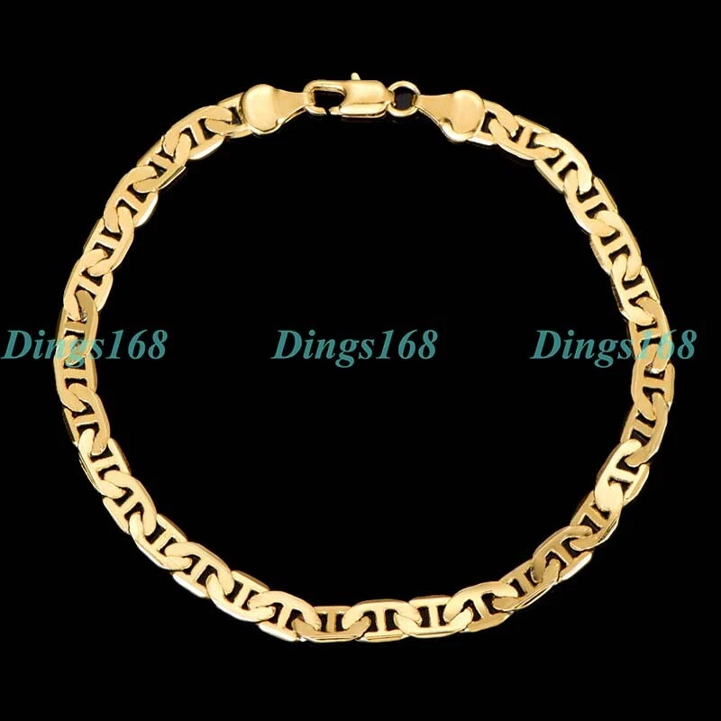 Product Description: This stylish 18K Yellow Gold Filled Flat Mariner Link Anchor Chain Bracelet is 8.1 inch long and wide. It is tarnish-resistant and hypoallergenic. It will not flake off, tarnish or discolor. It is covered under our 60-day 100% money-back guarantee. *** Free Gift Box included. Metal 18K Yellow Gold Filled Product Dimension Length: 8.1 inch/20.5cm; Width: 5.5mm/0.22 inch *** Please always refer to the description for the measurement of the product. Please do not judge the size based on the picture on your screen. The product may look larger or smaller based on your screen size. Weight 6.7 gram Main Color Gold Product SKU Q081A Metal Description: Gold filled jewelry is different from Gold Plated (GP)jewelry. Gold filled jewelry is made by heat and pressure bonding a layer (at least 25 micron thickness) of gold to some base metal core. It has all the great characteristics of solid gold jewelry. It does not flake off, tarnish or discolor. Gold filled jewelry is an economical alternative to solid gold. Gold plated is a method of covering another type of metal with a very thin, almost microscopic (usually 0.5-micron thick), film of pure gold by electroplating it. 18K gold contains 75% pure gold, while 14K contains 58.5% gold and 10K contains 41.7% gold. So 18K yellow gold has a deeper yellow hue than 14K or 10K. 18K rose gold is less blush-colored than 14K/10K. 18K white gold appears quite similar to 14K/10K white gold. We have the matching anklet and necklace available too. Shipping Policy (U.S, APO, FPO, Puerto Rico, Virgin Islands) All products will be shipped from our warehouse in Morgan Hill, California, USA For USA buyers, we will ship your order by USPS (Postal Office) First Class Mail or Priority Mail (Please make your choice when you make payment). We ship within one working day once payment received. Payments received before 1:00PM will be shipped on the same day. We ship to all address, including physical address, P.O. Box address, Puerto Rico, Virgin Islands, Guam, APO, FPO etc. International Buyers We ship worldwide. Flat Rate shipping to all countries regardless of quantity. For packages of such small size, most countries usually do not charge importing tax. However, in case there is any in importing tax, Please Note: Import duties, taxes, and charges are not included in the item price or shipping cost. These charges are the buyer's responsibility. Please check with your country's customs office to determine what these additional costs will be prior to bidding or buying. Customs fees are normally charged by the shipping company or collected when you pick the item up. These fees are not additional shipping charges. We can not guarantee the exact delivery date for international orders. Customer Service & Return Policy We care about our valued buyers, if you have any questions, our Customer Service staffs will be very glad to help you. We try our best to reply to your emails as soon as possible, however, due to high volume of daily incoming emails and time zone difference, we may not be able to reply your emails immediately. You satisfaction is always our No. 1 concern. Our success is 100% based on your satisfaction and continuous support. No matter for whatever reason, if you are not 100% satisfied, you may always return the product for refund or exchange. Please e-mail us with a brief reason before returning a package. Feedback and Detailed Seller Ratings Dear buyers, we appreciate your business, if you are satisfied with our product and service, please leave us a positive feedback. Your recognition will make us more confident to develop business and serve you better. Our goal is to make sure you are a happy buyer and pleasant shopping with us. Please email us before leaving any 1 or 2 ratings, negative feedback or open any dispute. We understand the concerns and frustrations you might have, and will do our endeavor to resolve the issues. Please give us the opportunity to resolve any problem. For international buyers, when you rate the shipping time part please take international transit into consideration. Click Here for this week's Special Offers!