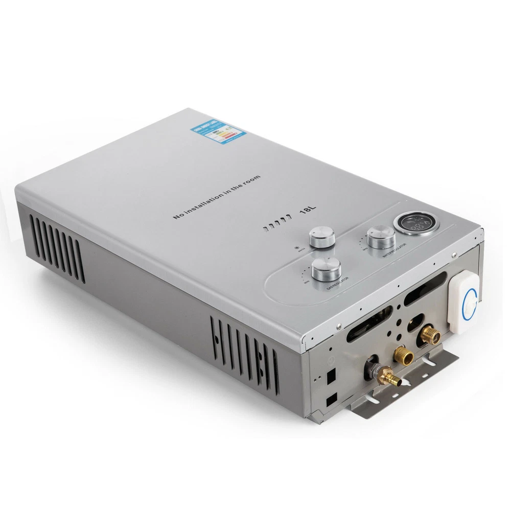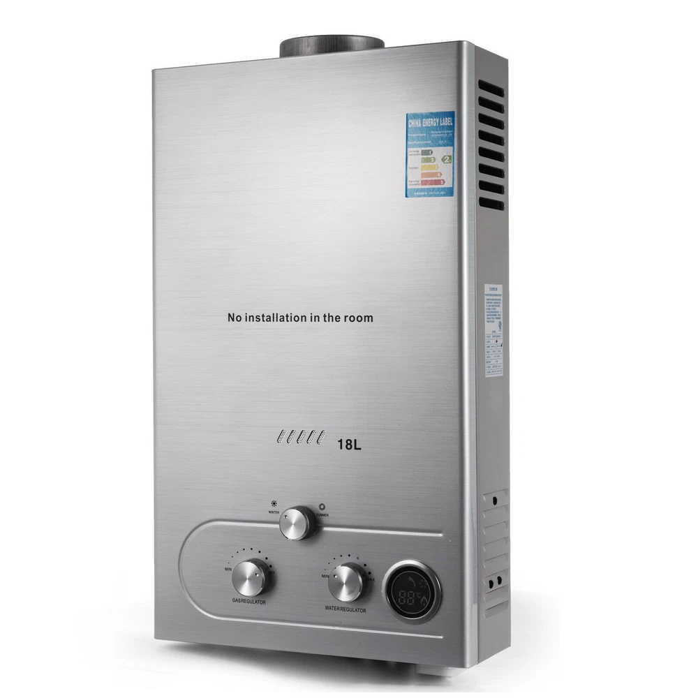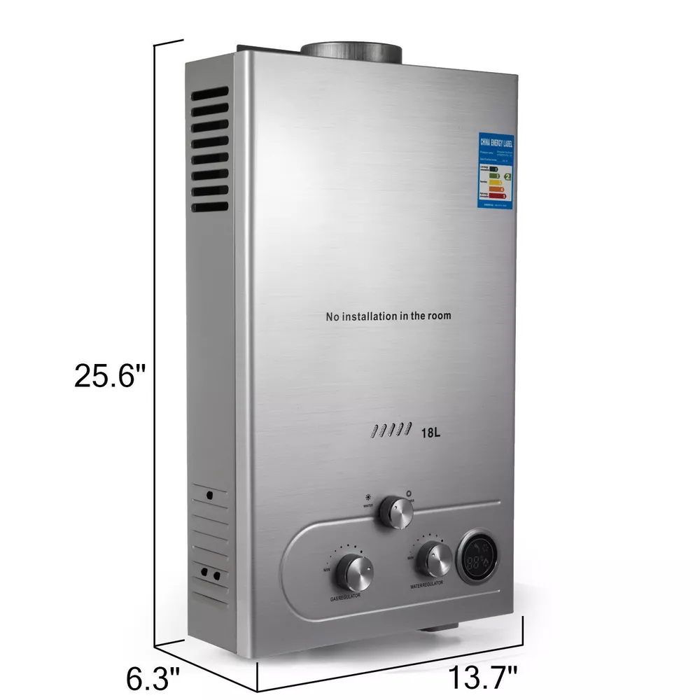 Need Help? Contact Us 9:00am-2:00am PST Sunday-Friday FAST SHIPPING WITHIN 24 HOURS 100% MONEY BACK GUARANTEE BUY WITH CONFIDENCE American Business ALL ITEMS IN STOCK IN CALIFORNIA American STANDARD PRODUCTS QUALITY GUARANTEED 18L 5GPM Tankless Natural /Propane Gas Hot Water Heater On-Demand Instant Boiler WHY SHOP WITH FACTORY-SUPPLIES? Excellent product at an excellent price,Fast shipping,Highly recommend,A+++ ( e***a ) Item was as described and arrived quickly. Great Seller to deal with. Awesome! ( o***f ) I could not be any happier my purchase! and service! Great!!! Thank you ( a***5 ) DESCRIPTION The listing is about 36KW 18L 5GPM Propane/Natural Gas Tankless Instant Hot Water Heater. Our gas water heater uses the Liquefied Petroleum Gas as the main energy material. Its advantage is instant, without waiting, and the smaller footprint can save a lot of space. You get instant, endless hot water wherever you are! 【Premiun Water Heater】-Tankless Water Heater with CSA Approved Regulator, with more safety protection such as flame failure device, anti-freezing protection,over heating protection,Just need 3.6PSI of water pressure,4.74 gallons of hot water can be output per minute. The maximum temperature raise is 167 °F,Applicable only Propane(LPG) 【Efficient & Energey Saving】-The Propane Water Heater exchanger and main burner are desinged with advanced combustion technology to decrease gas consumption and burning noise.Maximum power output 68,000btu/hour, you will get instant endless hot water easily wherever you are.Compact and lightweight structure with 11.5% energy saving technology,so you can get more hot water for less money. 【Portable Design】-Portable Water Heater size and lightweight make the water heater easy to carry and allow you to enjoy an amazing hot shower after a long day of camping, in your RV, or for giving your pet a bath,Size: 24.23x5.9x13.4 inches,Gas Hot Water Heater is Powered by 2 pcs size "D"cell Batteries. 【Complete Accessories】-This tankless water heater comes with CSA approval 5FT Gas Regulator, 5 Spray Modes high pressure Shower Head with 59in(1.5m) extended Long Stainless Steel Hose and Shower Holder,There are three interface ports under propane water heater. The left one is the Air inlet. The middle one is the shower port,and The right one is the water inlet. 【Wide Usage】-This Camping Heater,Perfect for Outdoor Shower,Which Bringing an Amazing hot Shower for you When you are Camping, Hiking, Fishing, Beaching, Portable Hot Water Sink, RV/SUV/MPV, etc. Besides, you can Also Wash your Pets with this Tankless Water Heater,Always check gas leakage before operation. 【Satisfaction Guarantee】-We feel confident that you will love our tankless water heater .If there's something makes you unsatisfied, please don't hesitate to contact us. We would offer you 100% refund or a replacement. Characteristic 1. Modern fashionable line shape designed, magnificent thin-shaped appearance. 2. High efficient energy saving. The heater exchanger and main burner adopt mostly advanced energy-saving and combustion technology to decrease gas consumption and burning noise. 3. Low water-pressure startup. The water control linkage valve makes the heater start up under low water pressure and stable water flowing under high pressure to meet the requirements of those in water shortage areas and those living in high stairs. 4. Manifold auto protection, Lon flame inspection. For the sake of your safety, automatically shut down gas power under unexpectable flameout. 5. Controller design, over heat protection. Both cold water and warm water can be properly controlled. 6. Over water pressure protection function. Automatically decrease pressure under excessive high water pressure. The anti-freezing apparatus can discharge the stock water to avoid damaging machine itself by freezing under cold areas or in case of long time no use. Application The gas water heater 18L-LNG is perfect for the house. Take a hot shower or wash the dogs. It makes it great for off grid or other areas where electricity is not readily available. Safety, the gas water heater to achieve heat and heat separation, bathed in the bathroom, installed in the kitchen, to avoid the risk of leakage during the bathing process. Precautions For the sake of your safety, please read following information carefully before using our products: 1. Every type of gas water heater is only suitable for one kind gas. And our 18l tankless instant hot water heater uses Liquefied Petroleum Gas. 2. Please read the instructions carefully before using the gas water heater, and in strict accordance with the instructions to use, maintenance of the water heaters. 3. It is highly recommended to be installed by a professional. 4. Must be used under the condition of ventilation, ensuring the normal condition of the flue kit. 5. Please check the gas connection regularly to ensure there is no leaking risks. Features Liquefied Petroleum Gas as the main energy material 36KW 18L 4.8GPM tankless hot water heater Modern fashionable line shape appearance Digital display with shower head Instant without waiting Save a lot of space Manifold auto protection Adopt advanced energy-saving and combustion technology High efficient energy saving Automatic ignition system Flame failure protection device Anti-freezing protection function Over heat protection Over water pressure protection function Low water-pressure startup Stable water flowing under high pressure CE, ROHS Certified SpecificationS Model : 18L Liquefied Petroleum Gas Water heater Type : Tankless Heat Output Power : 36 KW Gas Pressure(LNG) : 2000 Pa Hot Water Output : 18 L/min (4.8 GPM) Use Gas Type : Liquefied Petroleum Gas/Natural Gas Rubber Gas Hose(Outer diameter) : 20 mm (0.79 inch) Water Inlet : G1/2'' Water Outlet : G1/2'' Suitable Water Pressure : Min.: 0.02 MPa Max.: 0.8 MPa Starting Pressure : 0.015 MPa Thermal efficiency : ≥80.8% Smoke Exhaust Pipe Output Diameter : 9 cm (3.54 in