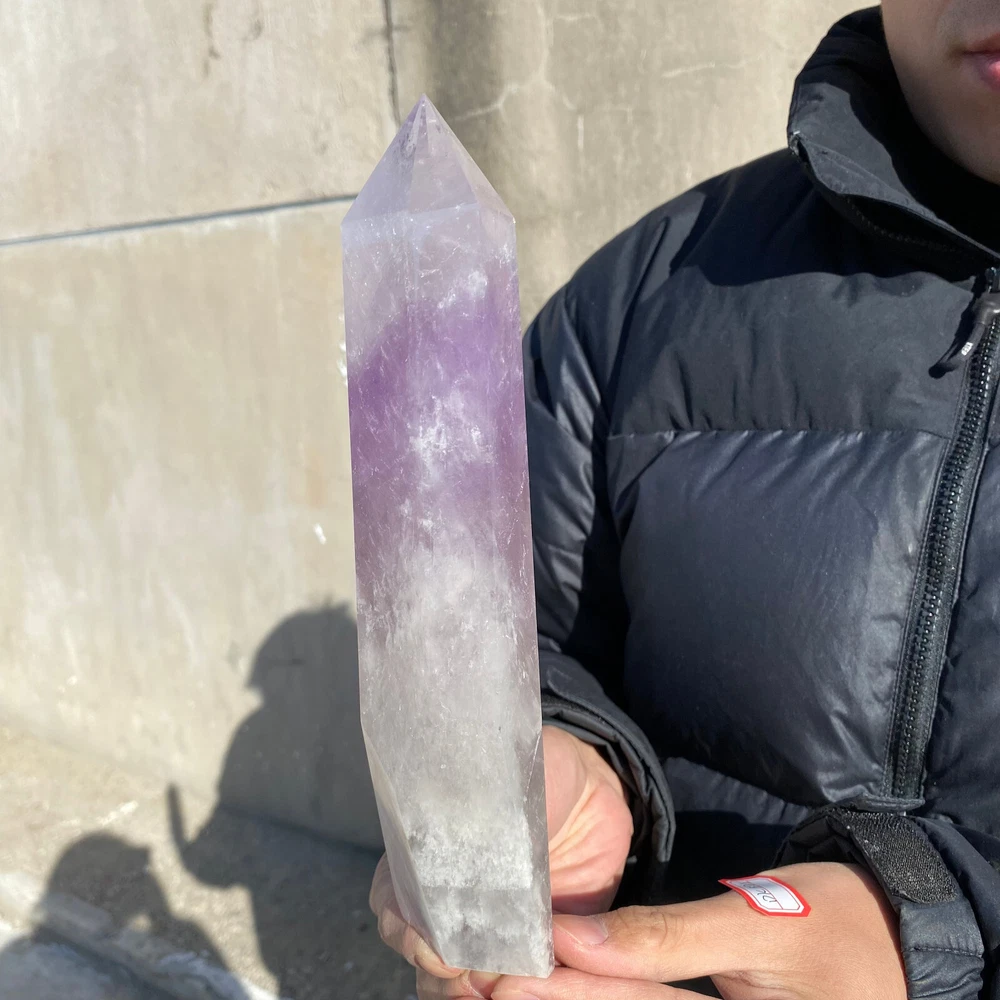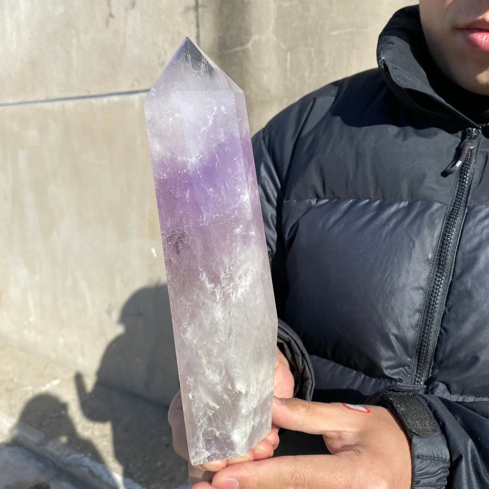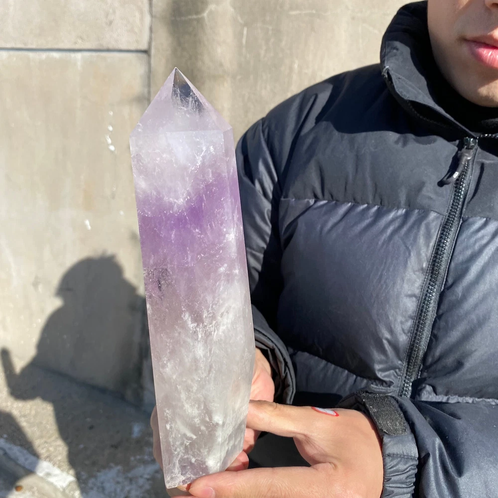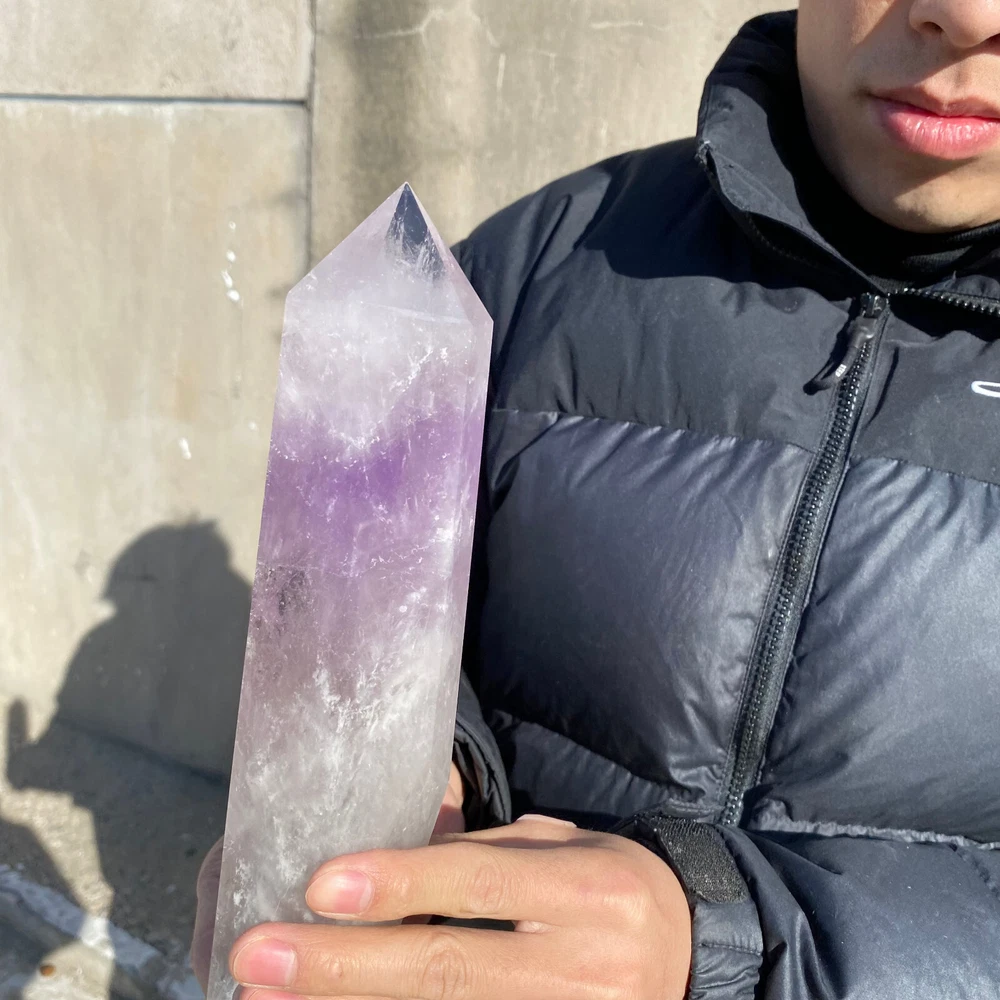 1.8LB Natural Amethyst Obelisk Carved Quartz Crystal Wand for Reiki Decor