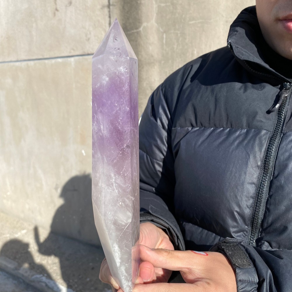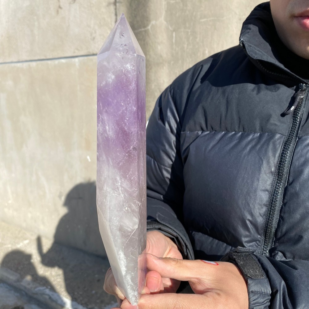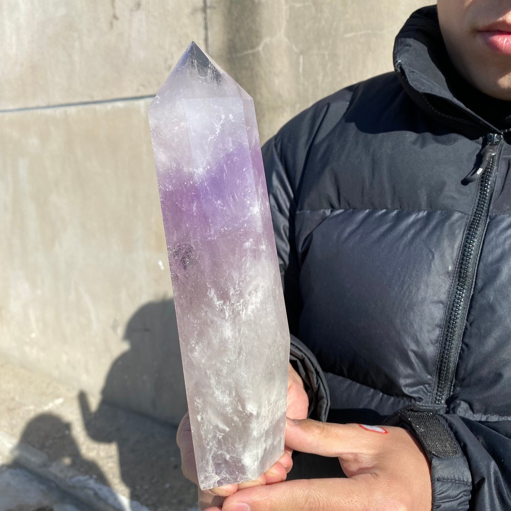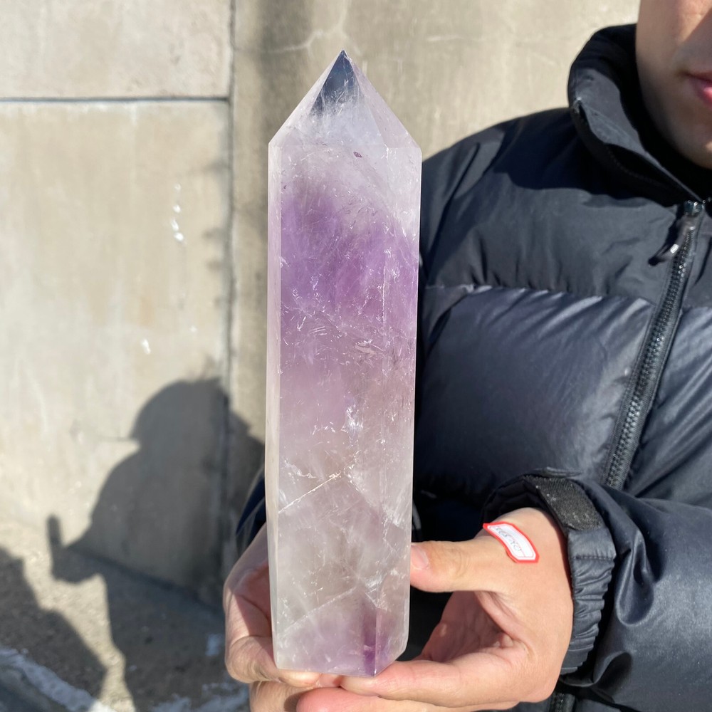 1.8LB Natural Amethyst Obelisk Carved Quartz Crystal Wand for Reiki Decor