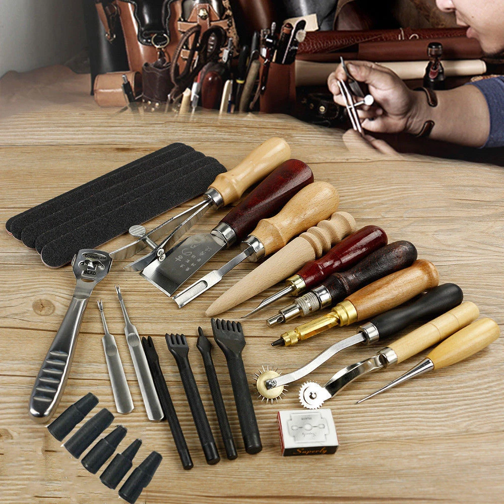 Brand New High Quality,Strong & Durable Design This Tool Set is an excellent way to get started in leather-craft. Whether you're a seasoned leather crafter or new to this excellent hobby, This Tool Set has all you need to make professional leather products at the craft level. Durable Set 18x Leather Craft Hand Tools Kit Stitching for Beginner Professional US Stock! Fast Delivery! Features: Brand New High Quality,Strong & Durable Design This Tool Set is an excellent way to get started in leather-craft. Whether you're a seasoned leather crafter or new to this excellent hobby, This Tool Set has all you need to make professional leather products at the craft level. 18 set leathercrafr tool contains: 5pcs Leather Edge Grinding Polish Tool 1pc Adjustable Leather Edge Stitching Groover Tool 1pc Wood Handle Edge Beveler 1mm 1pc Japanese Style Skiving Knife 1pc Leather Edge Edger Beveler Skiving Tool 1pc Leather-craft Sewing Roulette Leather Stitching Wheel 2.5mm 1pc Leather-craft Sewing Roulette Leather Stitching Wheel 4mm 1pc Wood Multi-Size Edge Slicker 1pc Multi-Size Hole Punch, 1.5mm/2mm/2.5mm/3mm/3.5mm/4mm 1pc Adjustable Edge Creaser up to 1.5cm 1Set Leather Stitching Diamond Chisel 4mm 1,2,4,6 Prong 1pc Skiving Tool with 5pcs Replacement Blades 1pc Stainless Edge Beveler 1mm 1pc Stainless Edge Beveler 2mm 1pc Wood handle Awl Specification: Type: Leather Carft Punch Tools Kit Set Quantity:18 Style Tools Material:High Quality Metal and Wood What is included: 18x leathercrafr tool Note: Please be reminded that due to lighting effects and monitor's brightness/contrast settings etc. The color tone of the website's photo and the actual item could be slightly different. Payment Terms of Sales Shipping Details Contact us About us Payment 1.We accept payment by credit card, paypal, Payoneer. 2.Upon on payment, please confirm your shipping address. Terms of Sales 1. We ship out all of our products brand new. 2. All products have passed quality inspection before shipment. Shipping Details 1.We are located in NJ, CA ,all the items will be shipped via USPS, UPS Ground, Fedex Ground with tracking number provided. 2. We cannot ship to Alaska, Hawaii & Puerto Rico Addresses. Contact us 1. If you are satisfied with the transaction pls remember to leave us a positive feedback 5-star will be much appreciated. 2. Normally your email would get replied within 24 hours (Business Hours) and your issue will be followed up carefully till we 've reached an agreement. 3. Please contact us first if you have any question or suggestion before opening a case or dispute, leaving any neutral or negative feedback. About us We are professional supplier of Home, garden and household products, such as plant stand, bahroom mirrors, TV Mount, Pet Bed, Pet Supplies, Coat racks, Home Furniture etc. Hope you can buy your favorite products in our store.