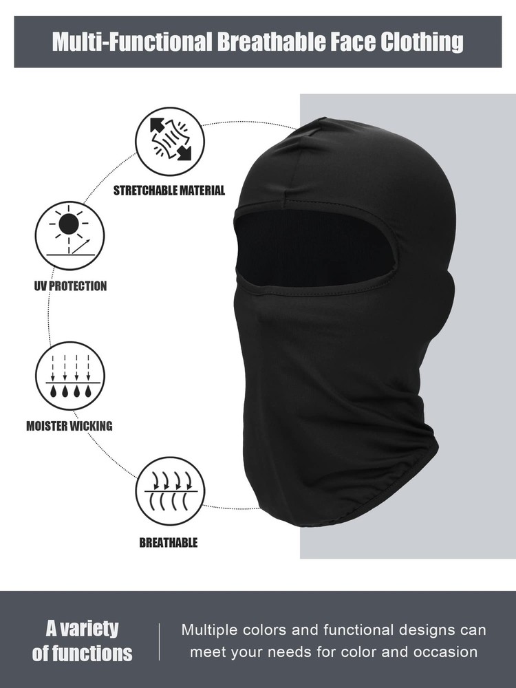 Features: The black cooling neck gaiter is approx. 40 x 23 cm/ 15.75 x 9.06 inches, nice for most women and men, besides the black color can match well with your most clothes and make you more stylish in the crowd. You can take the balaclava ski face masks as the linings of helmet, full face masks, face covers, bandanas, neck gaiters, scarfs, headbands, wristbands, pirate scarves and more, also they are practical gifts for summer and winter. Specifications: Material: polyester Color: black Size: one size Package includes: 18 x Balaclava face mask Notes: Manual measurement, please allow slight errors on size. The color may exist a slight difference due to different screen displays. Breathable and Wear Resistant: the balaclava face mask men is made of polyester, breathable and can absorb sweat quickly, so it can reduce the discomfort of sweat falling on the face, keeping you cool during summer Easy to Wash: the face coverings for men are lightweight and soft, comfortable to wear and not easy to wrinkle or break, reliable for long time wearing, and they can be washed by both your hands and washing machine, which will bring you much convenience Essential Summer Supplies: the balaclava ski mask can keep your face, nose, mouth, ear and neck from sun, dust and wind, so you don't need to worry the sunshine may hurt you, besides there is a big hole in the eye part so you can see the outside clearly Wide Functions: the outdoor face mask can be applied for a variety of occasions, such as skiing, snowboarding, motorcycling, cycling, running, camping, hiking, fishing, climbing and other outdoor activities, providing enough sun protection to you Abundant Quantity: the package contains 18 pieces of cooling masks for face, sufficient quantity can meet your daily use and replacement demands, also you can share them with your friends and families