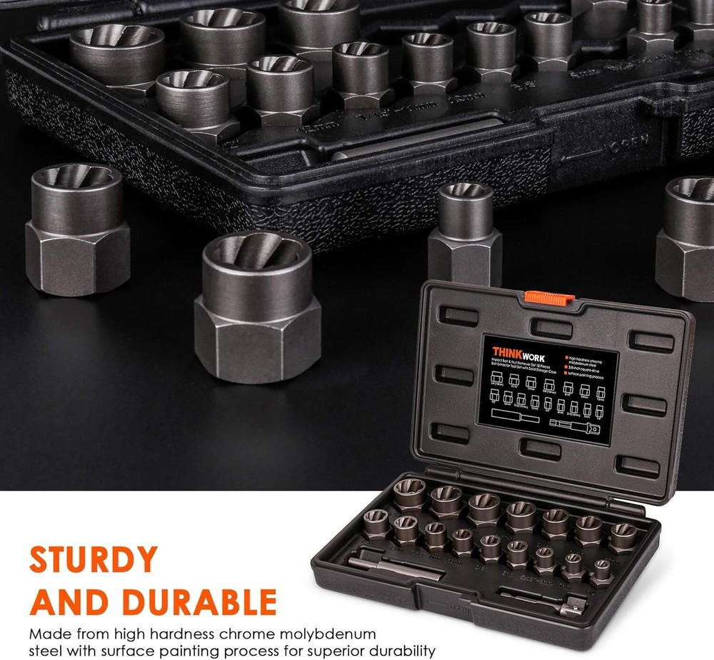 This bolt extractor kit is a lifesaver for stuck or stripped fasteners! The chrome-molybdenum steel construction grips tightly and won’t wear out, even on the rustiest bolts. The reverse spiral design bites in deeper as you turn, making stubborn nuts and screws a breeze. Perfect for DIY repairs or professional use—highly recommended for tough jobs!
