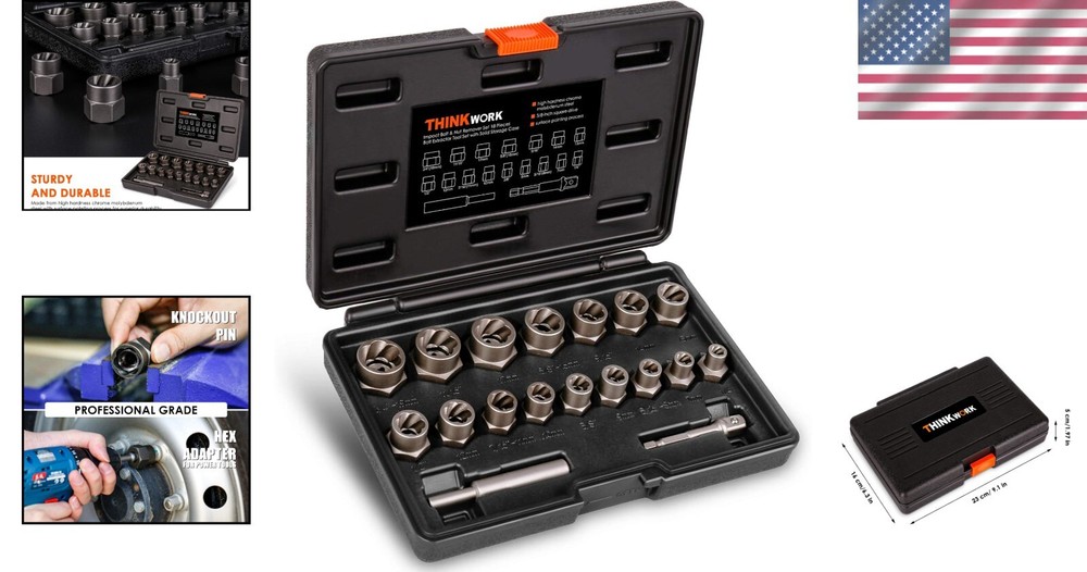 Bolt Extractor Kit 18-Piece Rusted Damaged Fastener Remover for Stripped Nuts ‹ › ‹ › ‹ › ‹ › ‹ › ‹ › ‹ › ‹ › ‹ › ‹ › ‹ › 18-Piece Bolt Extractor Kit Experience the exceptional power of our Bolt Extractor Kit , crafted specifically for rusted and damaged fasteners, ensuring you can tackle even the toughest stripping jobs. Key Features: High-Hardness Material: Each piece is made from chrome-molybdenum steel, guaranteeing superior durability and longevity. Powerful Grip: The internal thread with reverse spiral flutes is engineered to provide maximum gripping power—ensuring that the more you turn, the tighter it holds. Versatile Compatibility: The standard 3/8-inch square drive combined with a hex adapter makes this extractor kit compatible with hand, air, or power tools. Comprehensive Set: This 18-piece set includes sizes ranging from 1/4" to 3/4" (19mm), providing the versatility you need for various applications. Organized Storage: The heavy-duty blow-molded case ensures that your bolt extractor tools are neatly organized and easily transportable. Benefits: Effortless Extraction: Say goodbye to the frustration of stripped, rusted, or frozen bolts, nuts, and screws. Durable construction: Designed to withstand the rigors of frequent use, ensuring that you have reliable tools at your disposal for to come. Peace of Mind: Never worry about being unprepared—this comprehensive set equips you for any challenge! Why Choose Our Bolt Extractor Kit? Don’t leave your fastener issues to luck. The 18-Piece Bolt Extractor Kit is your trusted partner for all stripping and extracting needs. With its combination of high-quality materials, innovative design, and comprehensive selection of sizes, this kit offers unmatched reliability and efficiency. Whether you're a professional mechanic or a passionate DIY enthusiast, this will be an indispensable addition to your toolkit. Elevate your repair experience—order your Bolt Extractor Kit today and conquer rusted, damaged fasteners with ease! Shipping Free & Fast Shipping - We offer free shipping to most of the USA with a normal delivery time of 3-7 days. However, due to the current situation, additional delivery time (up to 3 weeks) may be required for some items. Alternative Carriers - We may use alternative carriers (e.g. USPS, FedEx, UPS, etc.) to ensure your package arrives safely and on time. Due to the use of multiple carriers, we are unable to provide a tracking number automatically. Handling Time - Orders are processed and shipped within 1-2 business days of receiving cleared payment. Shipping Restrictions - Shipping to Alaska, Hawaii, Puerto Rico, Guam, and other US territories may incur shipping charges or delivery restrictions. Please contact us before ordering, or your order can be refunded/cancelled. State Restrictions - There may be restrictions based on your state of purchase. For example, certain items may not be shipped to California due to state regulations. Contact for Tracking Updates - If you require tracking updates or have any concerns about the delivery of your order, please feel free to contact us, and we will be happy to assist you. Return 30-Day Hassle-Free Returns - We want you to be completely satisfied with your purchase. If you are not, you can return the item within 30 days of receiving it for a full refund or exchange. Easy Return Process - To start a return, simply contact us and we will provide you with a prepaid return shipping label and detailed instructions. Restocking Fee - There are no restocking fees for returns. However, the buyer is responsible for return shipping costs if the return is not due to a seller's error. Refund Processing Time - Refunds will be processed within 5 business days of receiving the returned item in its condition. Payment We accept all major credit cards, PayPal, and Apple Pay for your convenience. Your payment information is secure and encrypted to ensure a safe and seamless transaction. Please complete your payment within 3 days of purchase to avoid any delays in shipping. Feedback Your feedback is extremely important to us. We strive to provide the best products and customer service possible. If you are satisfied with your purchase, please take a moment to leave us a positive review. If you have any concerns or issues with your order, please contact us before leaving negative feedback. We are committed to resolving any problems and ensuring your satisfaction. Contact Us If you have any questions or concerns, please feel free to out to our customer support team. You can contact us through the eBay messaging system. We are available Monday to Friday, 9:00 am to 5:00 pm EST, and we will do our best to respond to your inquiry within 24 hours. Buy it now and enjoy a pleasant shopping experience! Model: Bolt Extractor Kit Item Height: Bolt Extractor Kit Item Depth: 5.2 cm Unit Quantity: 1 Suitable For: Air Compressor,Air Drill,Angle Grinder,Buffing,Cement,Commercial,Drill,Drywall Compound,Grout,Grout Mixer,Lathe,Liquid,Mortar,Orbital Sander,Oscillating Tool,Paint,Plaster,Polishing,Residential,Rotary Tool,Thinset Mortar,Tile Adhesive,Work Bench Type: Nut Extractor Socket Set,Bolt Extractor Kit,Stripped Fastener Remover Application: Cutting,Grinding,Grinding/Sanding,Grinding and Cutting,Mixing,Removing Number of Items in Set: 18 Package Quantity: 1 Material: Chrome Molybdenum Steel Color: Black Item Diameter: 3/8 in Item Weight: 1 lb Unit Type: Unit