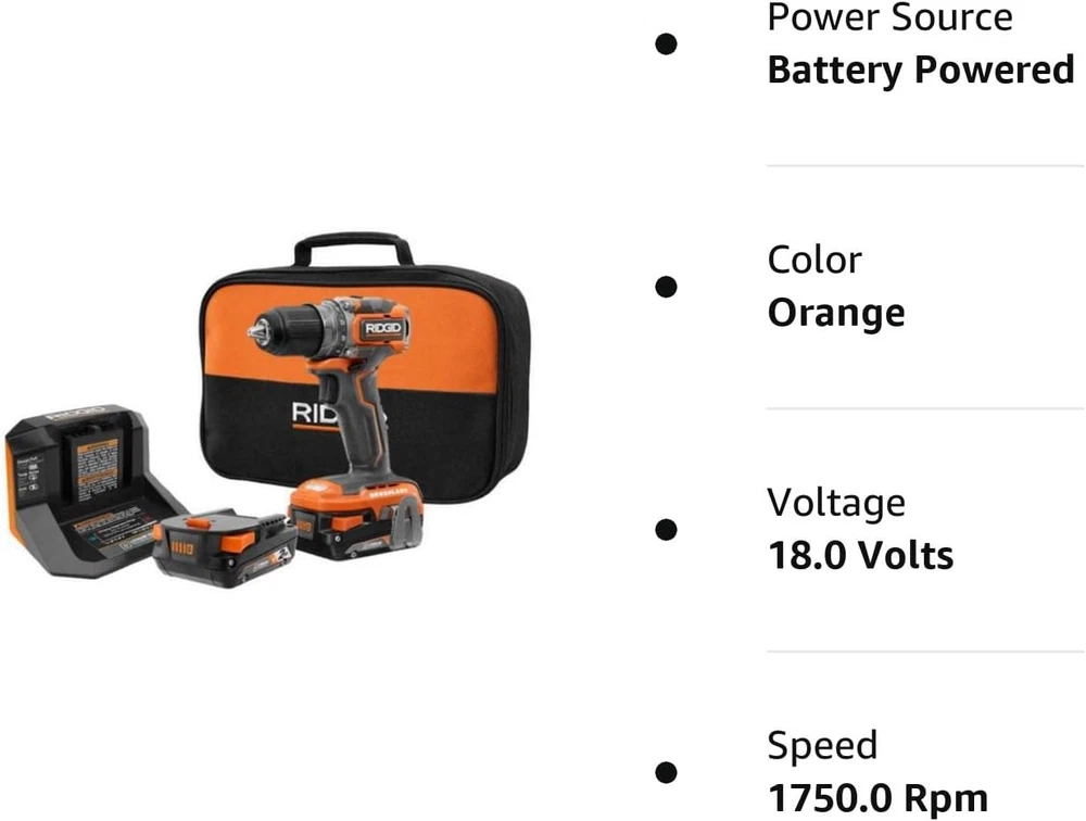 Menu Other Items Feedbacks About Us Contact Us Add To Favorites 18V Brushless Sub Compact Cordless 1/2 In. Drill Driver Kit with (2) 2.0 Ah Battery, Charger and Bag SubCompact design is ideal for tight spaces Includes: 1/2 in Drill/Driver, (2) 2.0 Ah Batteries, Charger, Bag RIDGID introduces the 18V SubCompact Lithium-Ion Brushless Cordless 2-Speed 1/2 in. Drill/Driver Kit with (2) 2.0 Ah Battery, and Charger. This 18V SubCompact Brushless 2-Speed 1/2 in. Drill/Driver Kit features all metal gears for added durability on the jobsite or at home. The model is 30% less weight and 35% more compact with optimized ergonomics. The 1/2 in. single sleeve ratcheting chuck holds bits tight and secure. The Brushless Motor offers more runtime and longer motor life. The 18V SubCompact Brushless 2-Speed 1/2 in. Drill/Driver delivers 425 in./lbs. of torque and 0-450/0-1,750 RPM. The RIDGID 18V SubCompact Brushless Cordless 2-Speed 1/2 in. Drill/Driver Kit includes (2) 2.0 Ah Lithium-Ion Battery, an 18V Charger, a double-ended bit, bag, and an operator's manual. Brushless Motor Technology delivers more runtime, power, and longer motor life 2-speed settings for matching power to the task SubCompact model is 30% less weight and 30% more compact in comparison to RIDGID Brushless 1/2 in. Drill/Driver R86009 1/2 in. Drill/Driver delivers 425 in./lbs. of torque and 0-450/0-1,750 RPM 24-position clutch ring allows adjustments to match torque to application All metal gears for extended tool durability LED Light for improved visibility in confined spaces and low light situations Reversible belt hook and bit holder allow you to apply on either side for additional customization Batteries: Up to 2X more runtime and has 2X longer life compared to standard lithium-ion batteries Charger: 18V Charger compatible with all RIDGID 18V Batteries 100% Compatible: Works with all RIDGID 18V Batteries, Tools, and Chargers Includes: (1) R8701 18V SubCompact Brushless 1/2 in. Drill/Driver, (2) R87002 18V 2.0 Ah Batteries, (1) R86093 18V Charger, (1) belt hook with screws, double ended bit, bag, and operator's manual Item Specification Amperage 2 Amps Battery Capacity 2 Amp Hours Batteries Required? No Maximum Power 550 Watts Number of Speeds 2 Power Source Battery Powered Part Number R8701K Color Orange Material Metal Battery Cell Type Lithium Ion Item Weight 6.38 pounds Batteries Included? No Voltage 18 Volts Maximum Rotational Speed 1750 RPM Item model number R8701K Included Components Bare-Tool Speed 1750 RPM Product Dimensions 15.3"L x 9.5"W x 4"H Dimensions Shipping Returns Additional Info Product Dimensions: 9.5 "h x 15.3 "h x 4.0 "h. Weight: 6.38 lb Fast shipping is very important for us. Our standard shipping service is FREE. Your order will be shipped within 1-3 business days upon full payment received. Most items are delivered within 3-5 business days, however, please allow 3-10 business days. We are shipping only to USA. We only ship to the confirmed Paypal address. We reserve the right to cancel any order for any reason at any time. We are not responsible for undeliverable addresses. We offer a 30 day return policy from checkout winning date. Your satisfaction is guaranteed! If for any reason you are unhappy with your item, just return it within 30 days for a full refund, minus shipping cost. Please contact us prior to initiating a return so that we can issue you a refund authorization. Items defective upon receipt must be packaged in their retail packaging as if new and returned with a detailed description of the problem. Return shipping fees are not refundable. We reserve the right to decline any returns if the above guidelines are not followed. All of our items, unless otherwise stated, will only run on 120 volts. Please check to make sure your country complies with these specifications. If you have a problem or question regarding your transaction please contact us before leaving any type of feedback. We will work with you to resolve any problem you may have.