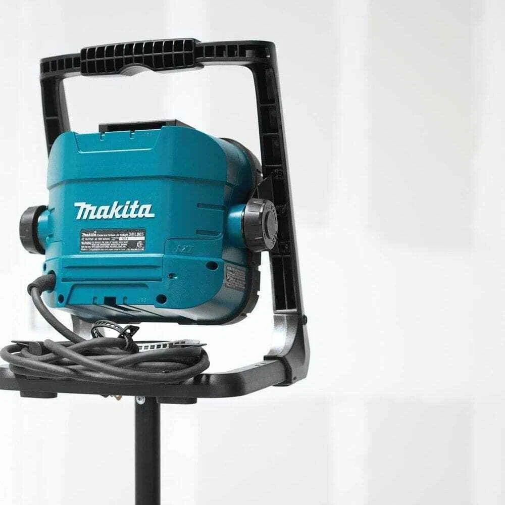 Part of the Makita LXT 18V:36V line of 325+ cordless power tools Lamp head's position is adjustable for increased versatility Tool has a 3-year limited warranty from date of purchase The 18-Volt LXT Lithium-Ion Cordless/Corded LED Flood Light (DML805) offers the convenience of choosing between cordless or corded operation and provides bright and even lighting for large work spaces without the high heat of halogens. At full brightness it provides 750 Lumens of light and 450 Lumens on low mode. The fast-charging 18-Volt LXT Lithium-Ion 4.0 Ah battery (sold separately) delivers 10.5-hours of continuous illumination on a single charge. It also features Extreme Protection Technology (XPT) for improved dust and water resistance. It is fully compatible with Makit... Hand Tools & Equipment 18V LXT Lithium-Ion Cordless/Corded LED Flood Light Part of the Makita LXT 18V:36V line of 325+ cordless power tools Lamp head's position is adjustable for increased versatility Tool has a 3-year limited warranty from date of purchase The 18-Volt LXT Lithium-Ion Cordless/Corded LED Flood Light (DML805) offers the convenience of choosing between cordless or corded operation and provides bright and even lighting for large work spaces without the high heat of halogens. At full brightness it provides 750 Lumens of light and 450 Lumens on low mode. The fast-charging 18-Volt LXT Lithium-Ion 4.0 Ah battery (sold separately) delivers 10.5-hours of continuous illumination on a single charge. It also features Extreme Protection Technology (XPT) for improved dust and water resistance. It is fully compatible with Makita 18-Volt Lithium-Ion batteries. It's part of Makita's expanding 18-Volt Lithium-Ion series, the world's largest cordless tool line-up powered by an 18-Volt Lithium-Ion slide-style battery. Makita 18-Volt Lithium-Ion batteries have the fastest charge times in their categories, so they spend more time working and less time sitting on the charger. 2-mode operation: delivers 750 Lumens on high mode or 440 Lumens on low mode Up to 5-hours of continuous illumination with a 4.0 Ah LXT battery on high mode (battery and charger not included) Up to 10.5-hours of continuous illumination with a 4.0 Ah LXT battery on low mode (battery and charger not included) Extreme Protection Technology (XPT) is engineered for improved dust and water resistance for operation in harsh conditions (only with DC power) LED lights effectively illuminate work area without the high heat of halogens Adjusting knobs enable the user to direct the flood light to desired angle User can choose between battery or corded operation, compatible with 18-Volt LXT battery (battery not included) Backup power is provided by an 18-Volt LXT battery and keeps the flood light on if AC power is lost (charged battery must be installed) AC cord is easily stored and wrapped around mounting stand base Integrated handle can be used as a hanging hook for user convenience Light will flash to alert user when battery charge is low (battery not included) Compact design at only 8-3/8 in. L Weighs only 5.7 lbs. with battery (battery not included) Flood light can be mounted on optional tripod light stand individually or with 2 flood lights (tripod light stand not included) Flood light can be mounted on optional pipe clamp light stand (pipe clamp light stand not included) 3-year warranty on flood light Battery and charger sold separately Only use genuine Makita batteries and chargers Click here to shop for more Makita products Click here for more information on Electronic Recycling Programs Battery Life (hours):10.5 hr|Battery Life (hours):10.5 hr|Battery Type:Lithium-Ion Battery Pack|Battery Type:Lithium-Ion Battery Pack|Bulb Type:LED|Bulb Type:LED|Casing material:Plastic|Casing material:Plastic|Charger Included:Charger Not Included|Charger Included:Charger Not Included|Color:Teal|Color:Teal|Flashlight Features:High/Low Switch,Pivoting Light|Flashlight Features:High/Low Switch,Pivoting Light|Flashlight type:Spotlight|Flashlight type:Spotlight|Hardware Color Family:White|Hardware Color Family:White|Included:AC/DC Adapter|Included:AC/DC Adapter|Light Mode:Standard|Light Mode:Standard|Lumens:750|Lumens:750|Number of Batteries Required:1|Number of Batteries Required:1|Package Quantity:1|Package Quantity:1|Power Source:Battery|Power Source:Battery|Product Weight (lb.):5.7 lb|Product Weight (lb.):5.7 lb|Protective Features:No additional features|Protective Features:No additional features|Returnable:90-Day|Returnable:90-Day|Safety & Security Product Type:Flashlights & Accessories|Safety & Security Product Type:Flashlights & Accessories|Manufacturer Warranty:3-year limited warranty|Manufacturer Warranty:3-year limited warranty|Product Depth (in.):8.375 in|Product Depth (in.):8.375 in|Product Height (in.):12.875 in|Product Height (in.):12.875 in|Product Width (in.):10.25 in|Product Width (in.):10.25 in Item Specifics Brand Makita UPC 088381699303 MPN DML805 Type Handheld Spotlights Payment PayPal is our preferred method of payments it's the quickest, easiest and most secure way to pay for your goods or services online. PayPal offers buyer and seller protection should there be a problem. If you do not have a PayPal account, to get started and buy your first item with us is very easy. Simply click on the 'Buy It Now' button and follow the eBay checkout steps. Select PayPal as the payment method you then will be given the chance to enter your card details in to PayPal's secure checkout in order to pay for your order. Shipping 1. Your purchase is shipped directly to you as soon as we have received your cleared payment. 2. Normally all of parcels would be shipped within 3days(From Monday to Saturday). 3. We will send information on eBay or email if the parcel was delayed due to our holiday. 4. We provide three kinds of shipping for choice. Shipping way depend on delivery address. Returns If an unit is received defective, of course we take it back or replace it. If the unit is received a