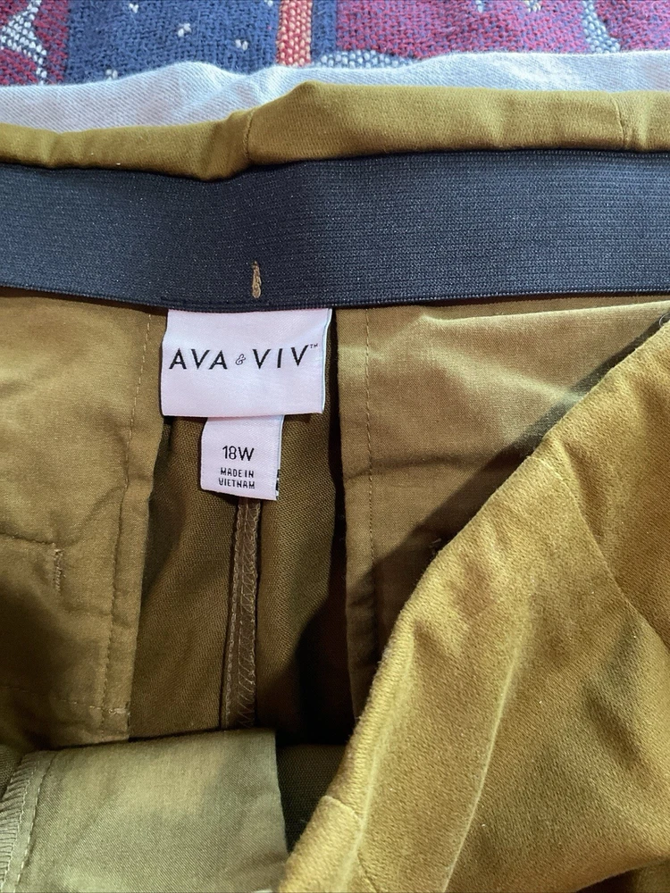 Elevate your wardrobe with these stylish and comfortable pants from Ava & Viv. The olive green, soft brushed cotton material is perfect for any casual or business occasion. The high-rise waist and wide-leg style provide a flattering fit for plus size women, while the zip closure and pockets add a touch of convenience. These pants are made from a blend of polyester, rayon, and spandex, making them both stretchy and durable. The solid pattern and cropped style make them a versatile addition to any outfit. Perfect for any fashion-forward woman who values comfort and style. Will mail promptly.