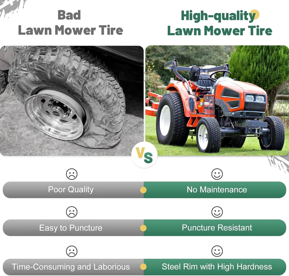 Store New Arrivals Add to Favorite View Feedback Contact 18X8.50-8 Lawn Mower Tires, Natural Rubber Turf Tire for Riding Lawn Mowers Garden Tractors Golf Cart Farm Equipment | 4 Ply Tubeless | 815Lbs Capacity 2PCS Description Speed Rating 815lbs Rim Size 8 Inches Tire Aspect Ratio 8 Inches Tire Diameter 18 Inches Section Width 8.5 Inches Item Diameter 18 Inches Load Index 81500 Speed Rating 815lbs Tread Type Non-Directional Construction Type Radial Seasons Year Round Load Index 815.00 Rim Size 8 Inches Tire Aspect Ratio 8 Inches Ply Rating 4-Ply Size 18X8.50-8 【Fitment】Fit for Riding Lawn Mowers, Garden Tractors, Golf Cart and Farm Equipment 【Specs】Tire diameter 18", Tire section width 8.5", Rim diameter 8" 【Feature】Strong friction resistance, Pneumatic Tubeless Natural Rubber Tires. No need to spend more time on tire maintenance. 【Capacity】815lbs load capacity 【Note】This tire is not suitable for highway Product Information: 18X8.50-8 Turf Tire Tire Diameter: 18" Tire Section Width: 8.5" Rim Diameter: 8" Fitment: For Riding Lawn Mowers, Garden Tractors, Golf Cart and Farm Equipment Includes: 2x Turf Tire ✔Pneumatic Tubeless Natural Rubber Tires ✔No Maintenance, No Need to Check Air Pressure and Add Air ✔Puncture Resistant ✔Steel Rim with High Hardness ✔Oil Infused Bushings or Precision Ball Bearing Note: Before purchasing, please check your existing tire sidewall for tire, hub and Bore ID to ensure proper fit. Not for highway use. ABOUT US We offer the best prices around on high quality products. Our E-store includes media such as books, movies, music and games while offering electronics, toys, sporting apparel, clothing, tools, general home, garden items and more. SHIPPING We are always working hard to ensure your package arrives as soon as possible. Please understand that some factors like weather, high postal traffic, and the performance of shipping companies are outside of our control. We offer free shipping to the lower 48 states and ship within 2 business days of payment, usually sooner. We do not accept P.O. Boxes. Please provide a physical address. For shipping outside of the continental USA, we only use eBay's Global Shipping Program.The item is shipped to KY and then sent to the rest of the world. International customers are responsible for all duties and taxes. Continue to check out in order to calculate costs for shipping the item to your country. Messages regarding eBay's Global Shipping Program MUST be directed at eBay EXCLUSIVELY. RETURNS We offer a 30-Day Return Policy on items which you are not completely satisfied with. You have the option for a full-refund or an exchange of the item. No returns are available on items shipped outside of the USA. PAYMENT We accept PayPal. CONTACT US This page content is yet to come Please ad us to your favorite seller and visit again later Thank You CUSTOMER SATISFACTION We try our very best to make sure every customer is completely satisfied. If there's a problem, message us! We're happy to help. WE ACCEPT Copyright © 2021 AutoDS. | All Rights Reserved