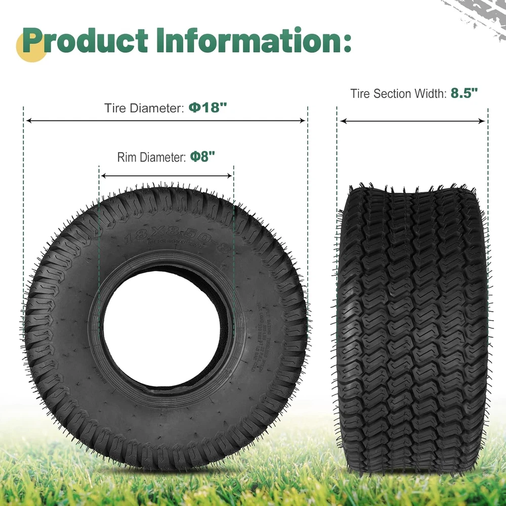 18X8.50-8 Lawn Mower Tires, Natural Rubber Turf Tire for Riding Lawn Mowers Gard