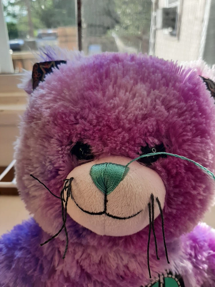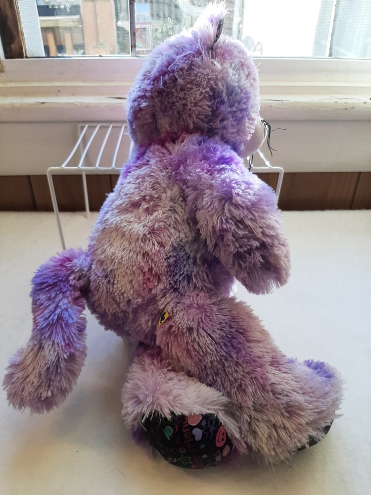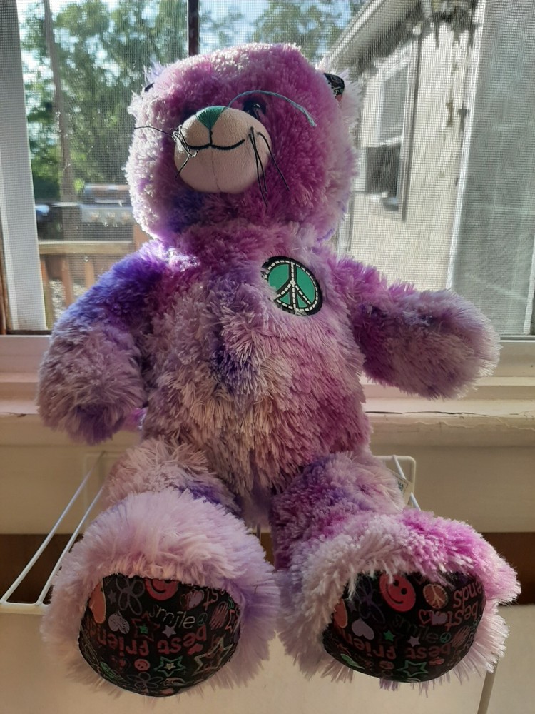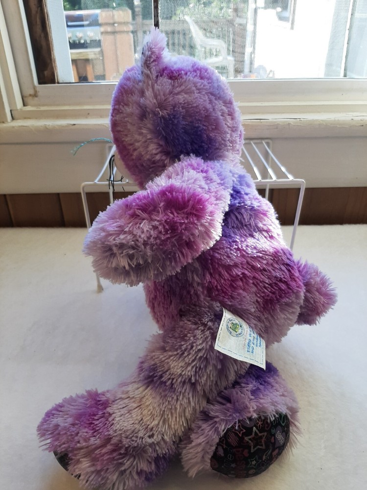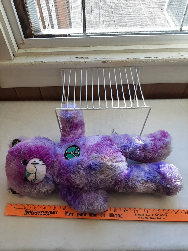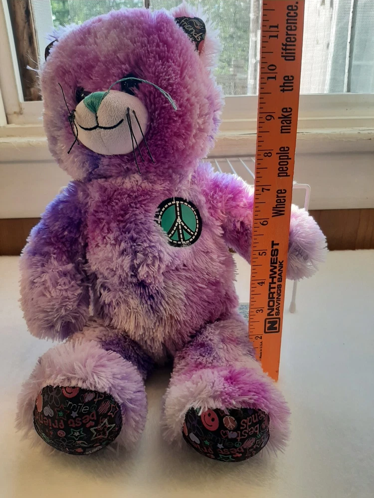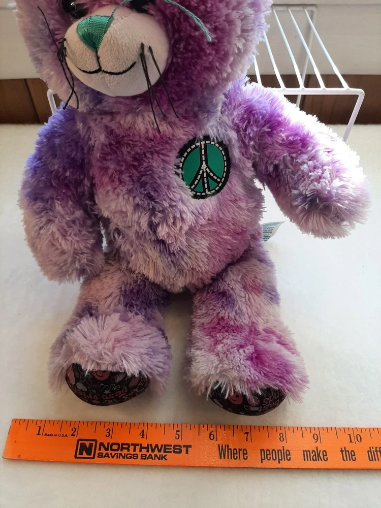 Build A Bear 18” Peace Tie-Dye Purple Kitty Cat BFF Stuffed Plush Animal Toy BAB In good pre-owned condition may show signs of wear from use/handling/storage/display. Please view all pics for condition/details/flaws/issues. SOLD AS IS There is sticker residue on the tag also has a loose string on his nose & minor ones on the fur please see photos for details. There is/maybe marks/spots/dirt/debris please see photos 1-18, there is/maybe paint loss/sticker loss please see photos 1-18, there is lite discoloration please see photos 1-18, there are surface scratches to item please see photos 1-18, please see all photos for condition/issues/details. II