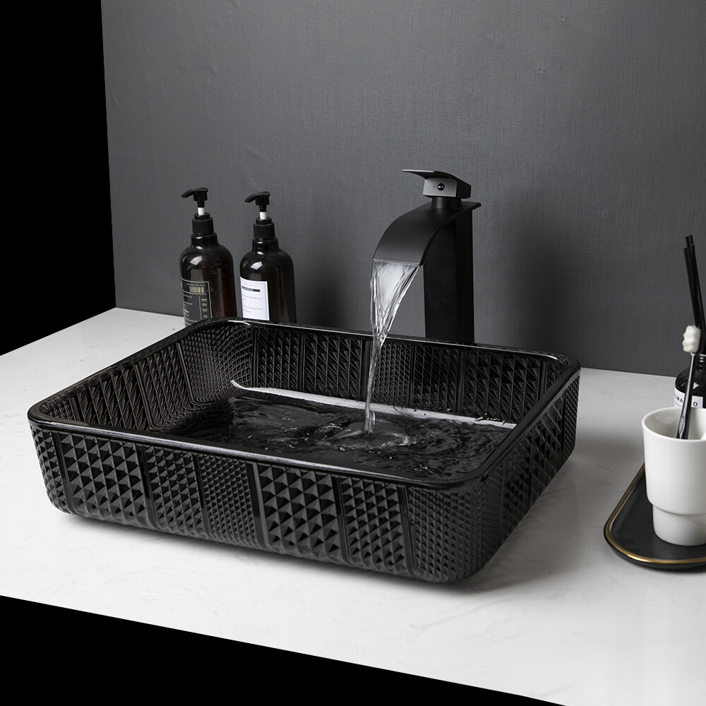 Feature: Elegant European inspired design Modern contemporary art Quality award of Construction ceramics Countertop mount installation Feature:Bathroom Vessel Ceramic Sink Set Sink Material: Ceramic Sink Finish: Black Shape: Rectangle Faucet material: Brass Faucet Finish: Black Valve Core Material: Ceramic Faucet Installation Holes: Single Hole Gold pop-up drain included Comes with 24 months manufacturing warranty PACKAGE CONTENT: 1 x Ceramic Vessel Sink 1 x Mixer Faucet with cold & hot water hoses 1 x Pop up drain(Black) 18"Ceramic Black Bathroom Basin Vessel Sink Mixer Water Faucet Tap Drain Combo Feature: Elegant European inspired design Modern contemporary art Quality award of Construction ceramics Countertop mount installation Feature:Bathroom Vessel Ceramic Sink Set Sink Material: Ceramic Sink Finish: Black Shape: Rectangle Faucet material: Brass Faucet Finish: Black Valve Core Material: Ceramic Faucet Installation Holes: Single Hole Gold pop-up drain included Comes with 24 months manufacturing warranty PACKAGE CONTENT: 1 x Ceramic Vessel Sink 1 x Mixer Faucet with cold & hot water hoses 1 x Pop up drain(Black) Payment Delivery details Terms of sales About us Contact us Payment Payment is expected in 3 days after the end of Auction. So we can ship your item ASAP. When you paying with Paypal, please confirm your Ebay and Paypal address. Unpaid auctions must be reported to ebay, contact us if you need to file an extension for any late payment. Delivery details We ship this item from United States , it usually takes 2-8 days for delivery. No delivery to military addresses (Hawaii, Guam additional shipping charges apply) Terms of sales I describe items as well as I can. If I have missed something, please let me know. Please e-mail me before leaving feedback if you are unhappy with your item, so we can work it out. International Buyers – Please Note: Import duties, taxes, and charges are not included in the item price or shipping cost. About us Comes with 2 years manufacture warranty Exchange on defective item within 7 business days after the product is delivered. Shipping damage has to be reported within 5 business days of which the product was delivered. Contact us If you have any questions, please be free to contact with us, we will answer your questions ASAP. We will answer your question via email, please check your email for the answers. Our business time is from Monday-Sunday/8:00AM – 22:00PM