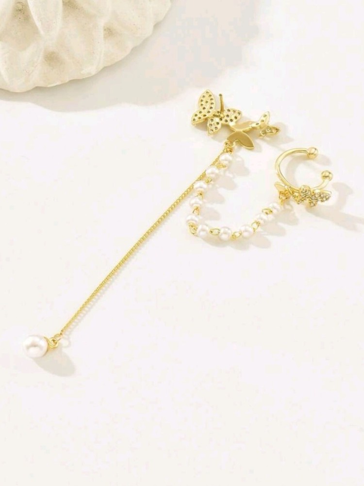 Dare to stand out with this 18k gold-plated Elegant Tassel Butterfly Pearl Cuff Stud Earring—a masterpiece of unique design and high-end craftsmanship. Featuring a delicate butterfly perched amidst cascading pearl tassels, this earring embodies movement, grace, and luxury in every detail. Designed to wrap elegantly around your ear, the cuff stud style ensures a secure fit while making a bold statement. It’s not just jewelry—it’s a conversation starter, perfect for elevating evening ensembles or adding a touch of magic to everyday looks. Step into the extraordinary and let your style take flight. Add this one-of-a-kind treasure to your collection today and make every moment a statement.