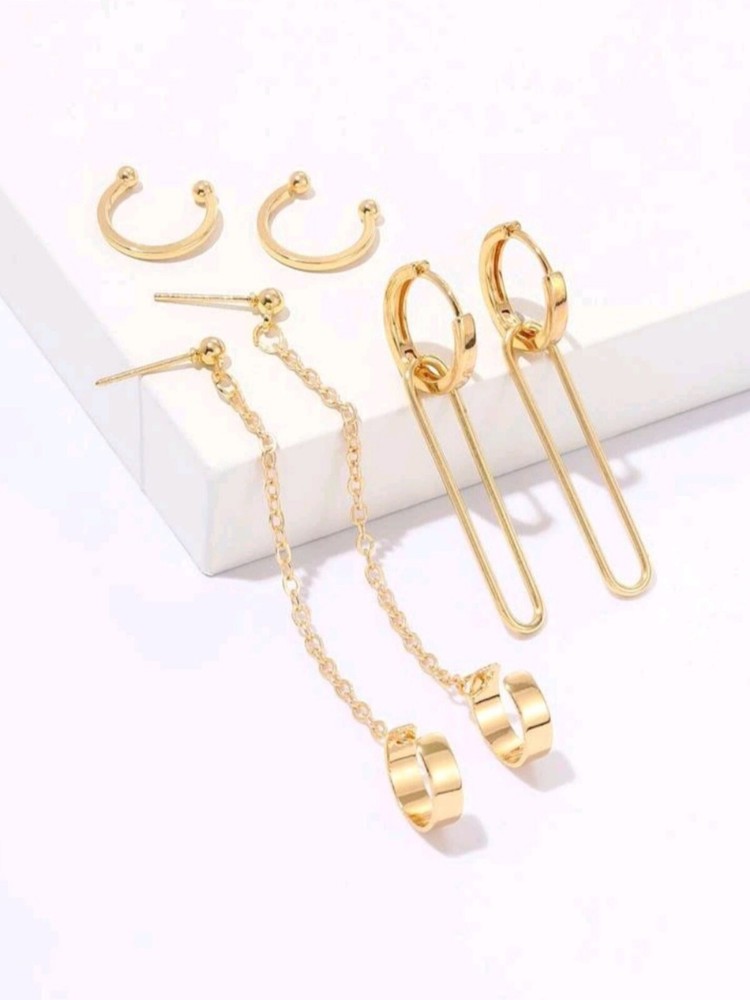 Transform your jewelry collection with our stunning 6pcs 18K Gold Plated Creative Chain Decor Geometric Earrings! These eye-catching earrings are designed for the modern woman who loves to make a statement while keeping it chic and sophisticated. Each piece in this versatile set features unique geometric shapes and intricate chain designs, perfect for adding a touch of contemporary elegance to any outfit. Whether you’re dressing up for a night out or elevating your everyday look, these earrings are perfect for every occasion. Mix and match them to create your own unique style, or wear them individually for a subtle yet stylish accent. Crafted with high-quality materials and plated in luxurious 18K gold, these earrings are not only stunning but also durable and designed to last. Step out in confidence and showcase your individuality with this fabulous earring set. Don’t miss out on the chance to enhance your daily decorations—grab your set today and let your style shine!