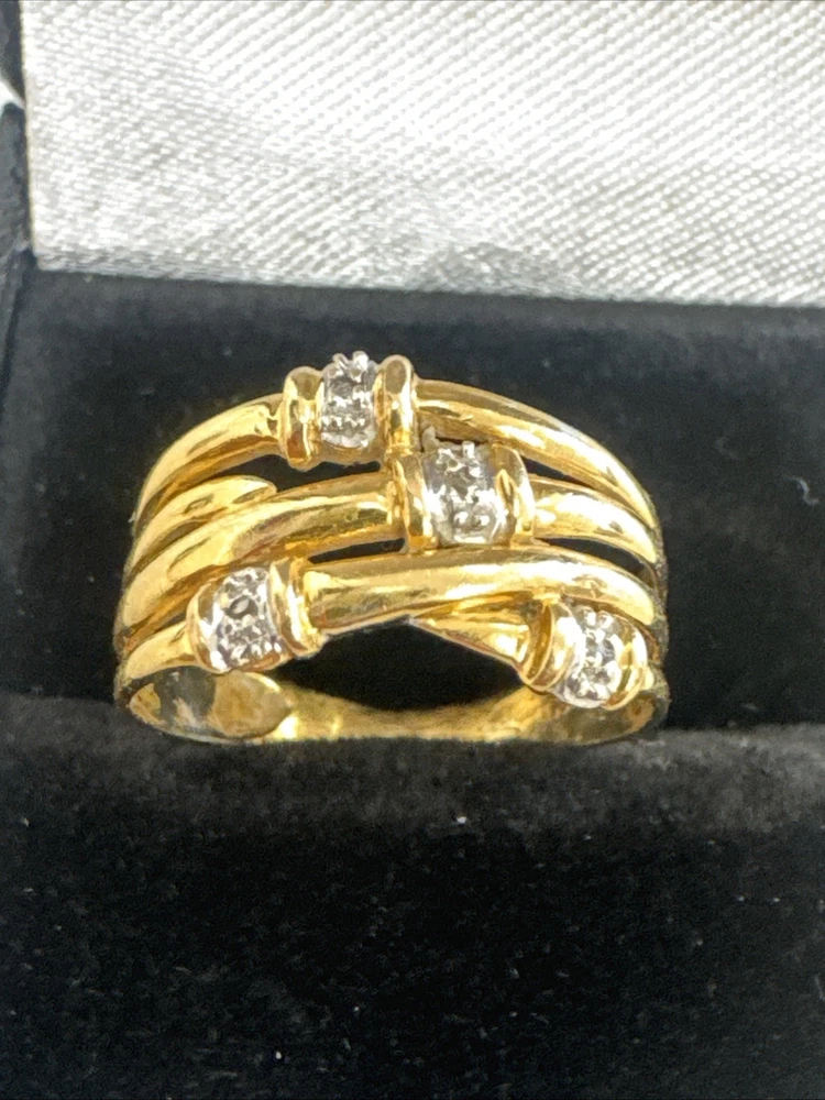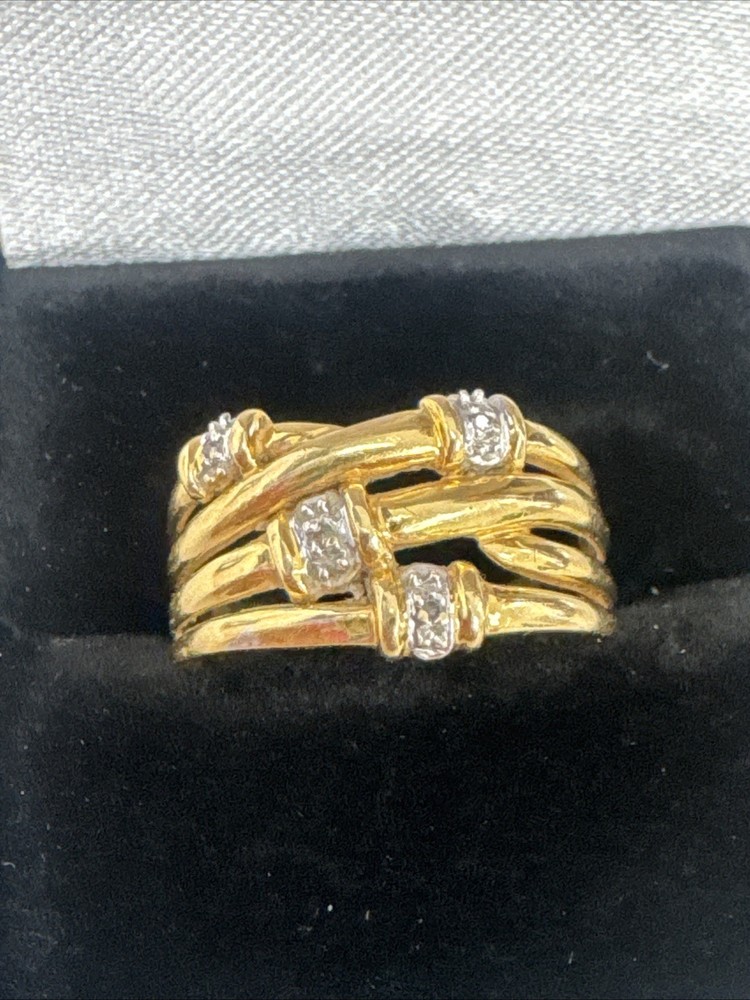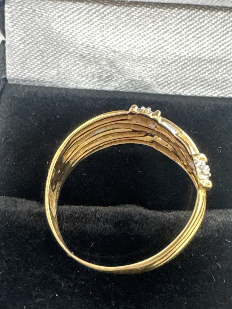 $ 8.6510k Yellow Gold Ring with Multiple Rows of White Diamonds Set in Gold Band