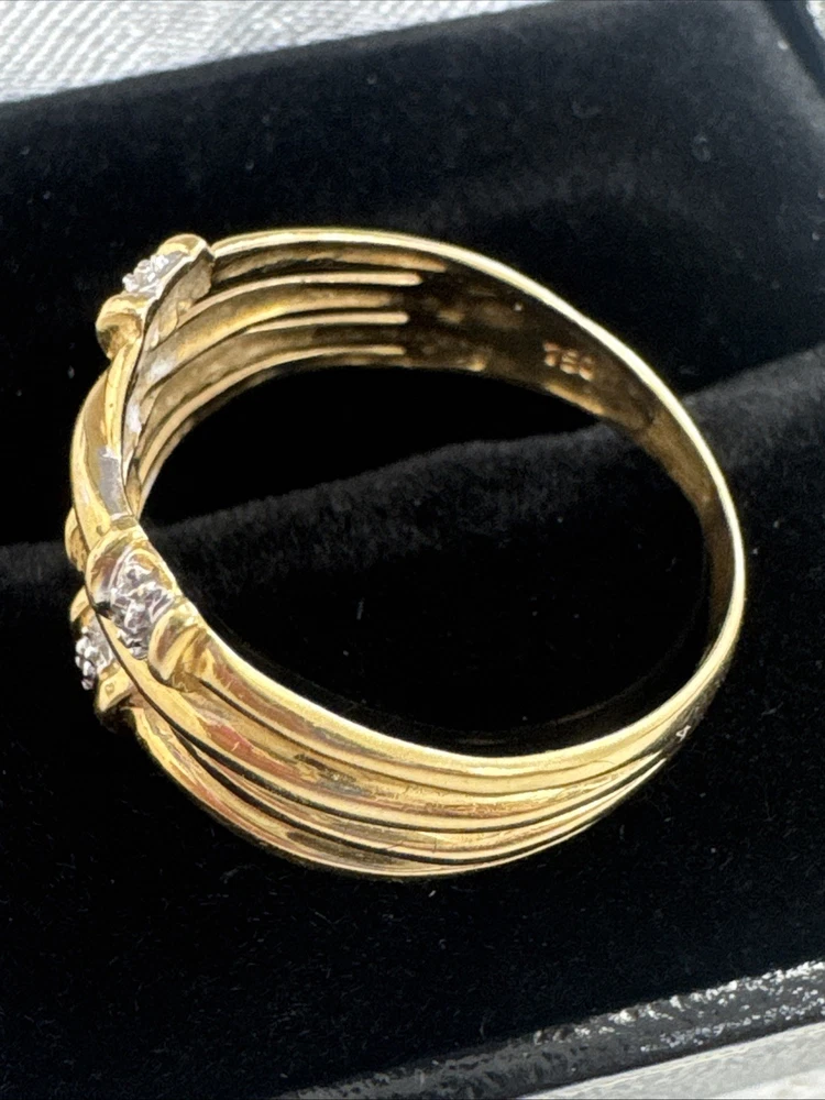 18 Yellow gold ring stamped 750 I have no knowledge of the type of stones but they look very pretty The total weight of the ring is 2.97 GRAMS The ring comes with the box in the picture Shipping is fast Thank you for the interest and for a full description please refer to the pictures
