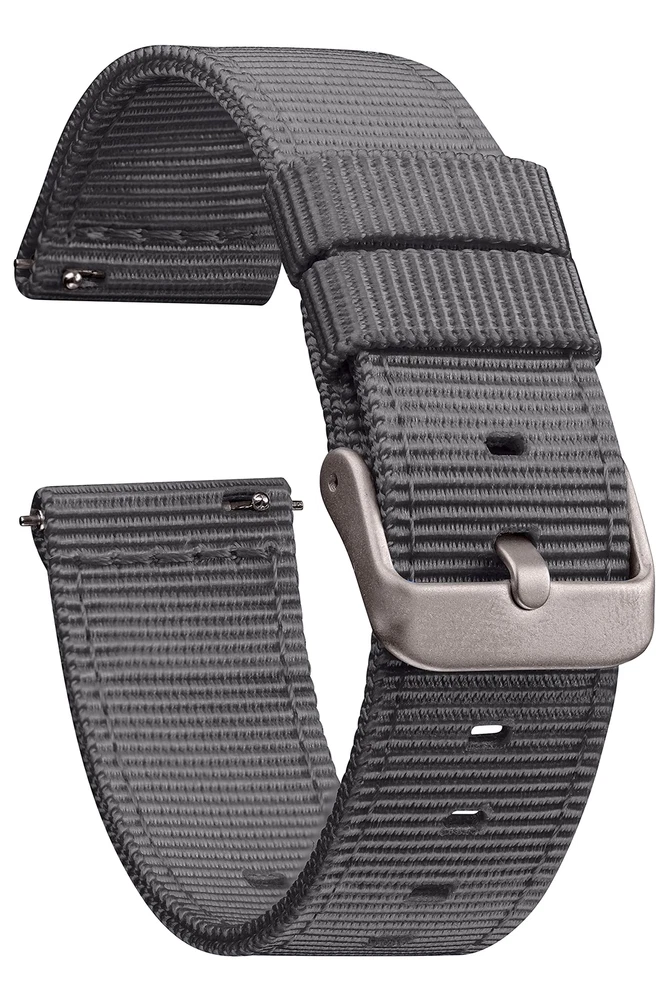 FAMILY OWNED COMPANY IN MICHIGAN - Spruce up your daily look with a classy and practical 18mm nylon watch band you can count on. Based in Royal Oak, Michigan, our bands are with popular watches including Fossil, Pebble, Skagen and more. Full compatibility below. HIGH QUALITY DESIGN - We obsess over every detail to ensure our premium collection of 18mm nylon watch bands feature loops and quick release pins for fast and tool-free strap installation or removal to conveniently change up your look. COMFORTABLE & DURABLE - Made with extremely high quality and water safe nylon, these 18mm quick release watch straps blends together the perfect combination of durability, comfort, and flexibility to suit any occasion and all color preferences. ADJUSTABLE & VARIOUS SIZES - Hand assembled and crafted to fit all wrist sizes, our nylon watch bands for men and women come in six popular watch band widths including 14mm, 16mm, 18mm, 19mm, 20mm, and 22mm. If you’re purchasing this item, you’ll receive a 18mm watch band. FREE REPLACEMENTS - We take the happiness and satisfaction of our customers seriously so all of our watchbands come with a . If you need your band or parts replaced for any reason at any time we'll send them to you for free.