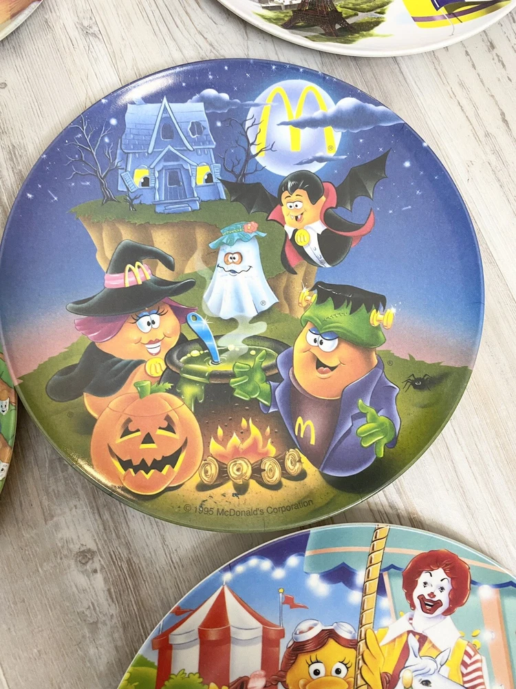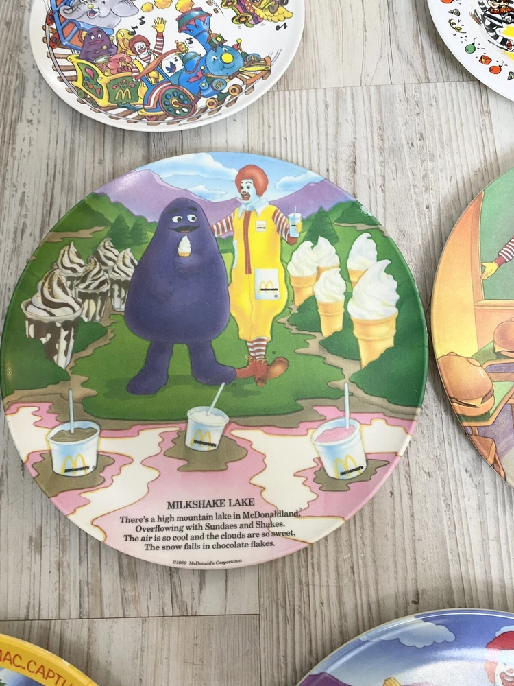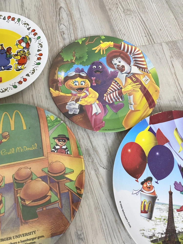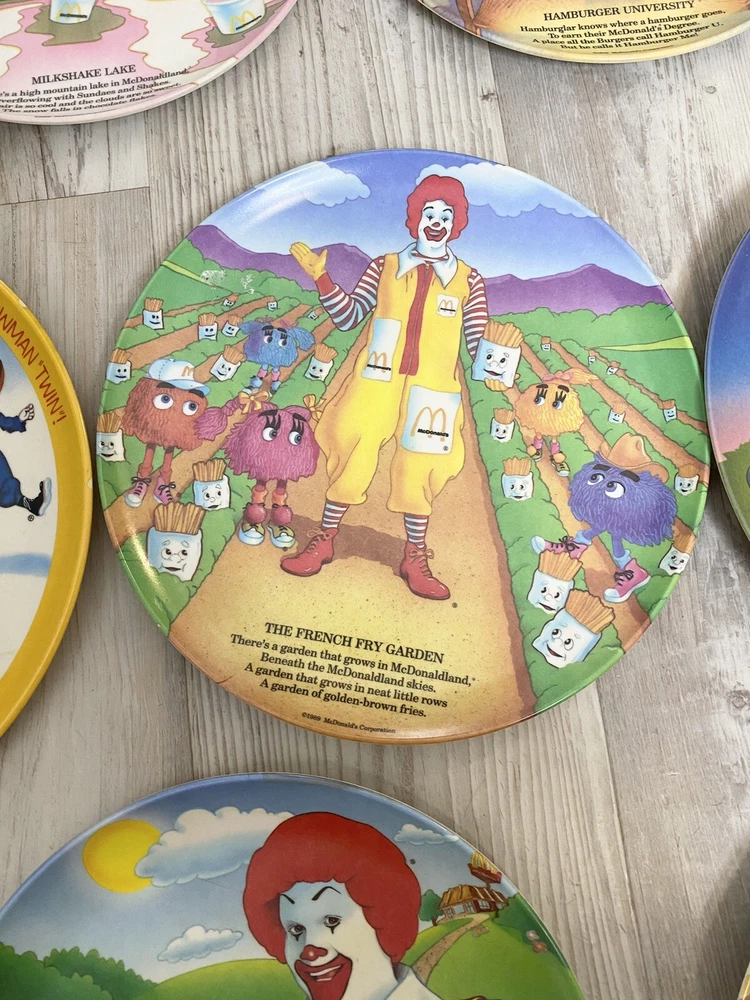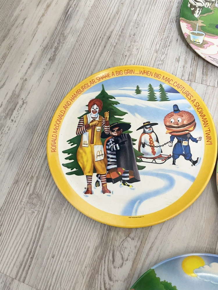 18 Plates total 14 are melamine plastic 1 is glass the small birthday party They range from years 1977- 2000 These are pre-owned some have scratches / flaws The 1977 plate is cracked Bowl Cup Collector Spoon Fork ( new sealed)