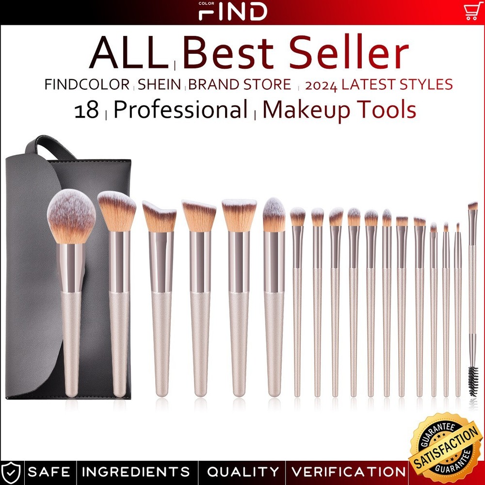 18pcs Pro Champagne Cosmetic Eyebrow Shadow Makeup Brush Set Pouch Bag Brushes