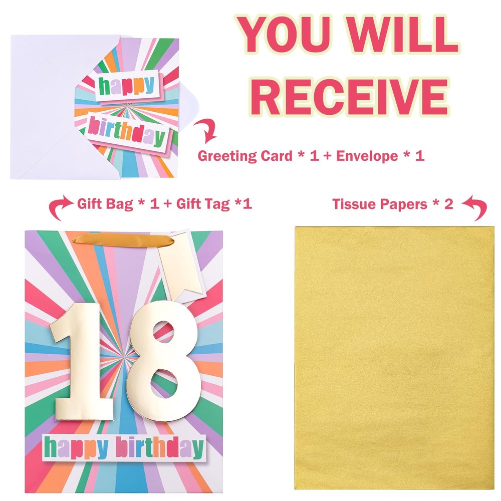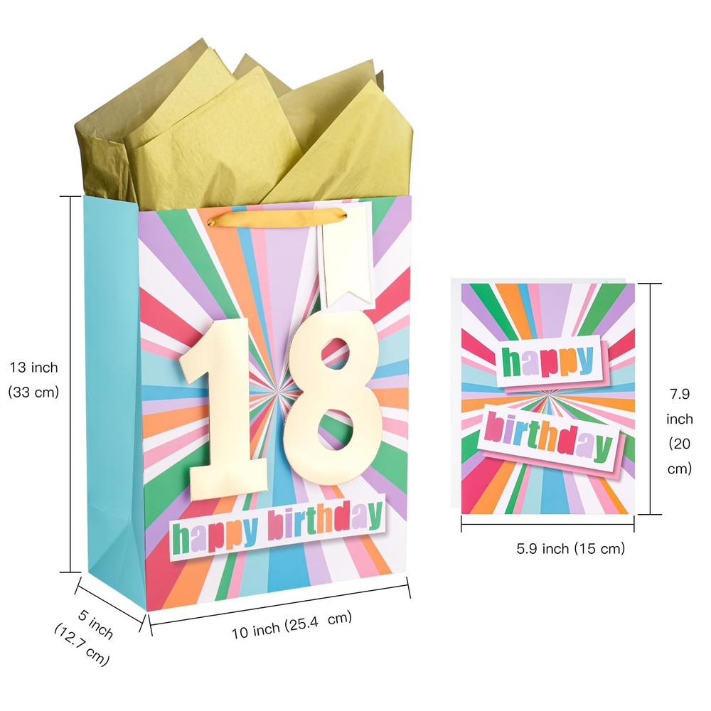 eBay Product Listing Welcome to Your Favorite My Store Your satisfaction is our top priority – Shop confidently 13" Large Birthday Gift Bag with Card and Tissue Paper - 18th Birthday Item Gallery Item Description PACKAGE: The package includes 1 gift bag + 1 greeting card + 1 gift tag + 2 tissue paper. The gift bag measure 13" Wide x 10" High x 5" Deep. STRONG & PREMIUM QUALITY: gift bags are all made with superior quality. Every part of the bag is well-made using heavy duty glue, making them sturdy and reliable for every packing need. UNIQUE LOOKING: 18th colorful "Happy Birthday" with gold foil design. Its stylish design is guaranteed to make your merchandise and gifts stand out from the crowd. The gift bag with ribbon handles and greeting card which you can write your best wish on. SUPER CONVENIENT:It is convenient to use with handle design. The gift bag is perfect for craft and DIY, you can decorate it with beautiful ribbons. Our excellent gift bags perfect for Birthday gift bag, party favor bag, celebration gift bag. Special Features PACKAGE: The package includes 1 gift bag + 1 greeting card + 1 gift tag + 2 tissue paper. The gift bag measure 13" Wide x 10" High x 5" Deep. STRONG & PREMIUM QUALITY: gift bags are all made with superior quality. Every part of the bag is well-made using heavy duty glue, making them sturdy and reliable for every packing need. UNIQUE LOOKING: 18th colorful "Happy Birthday" with gold foil design. Its stylish design is guaranteed to make your merchandise and gifts stand out from the crowd. The gift bag with ribbon handles and greeting card which you can write your best wish on. SUPER CONVENIENT:It is convenient to use with handle design. The gift bag is perfect for craft and DIY, you can decorate it with beautiful ribbons. Our excellent gift bags perfect for Birthday gift bag, party favor bag, celebration gift bag. QUALITY : Any question about products or orders, please feel free to the , we will try our best to solve the problem. Our Guarantee To You We offer fast shipping, free delivery, and 100% customer satisfaction guarantee. Not satisfied? Return your item for free within 30 days. 30-Day Free Returns Shipping Details Items will be sent to your eBay address. Please verify before purchasing. Typical delivery within 3-7 business days. Professional shipping services used for all orders. We ship to the continental US (48 states only). Unable to deliver to Alaska, Hawaii, or territories. No APO/FPO or PO Box deliveries available. We use eco-friendly packaging Payment Options We accept these secure payment methods: All transactions securely processed through eBay's payment system. Simple Returns 30-Day Satisfaction Promise Contact us through eBay messages within 30 days of delivery. We'll provide return instructions and our address. Return the item in its original condition. We'll process your refund within 48 hours of receiving the item. Get In Touch Have questions about your order? Contact us through eBay messaging for prompt assistance. We typically respond within 24 hours.