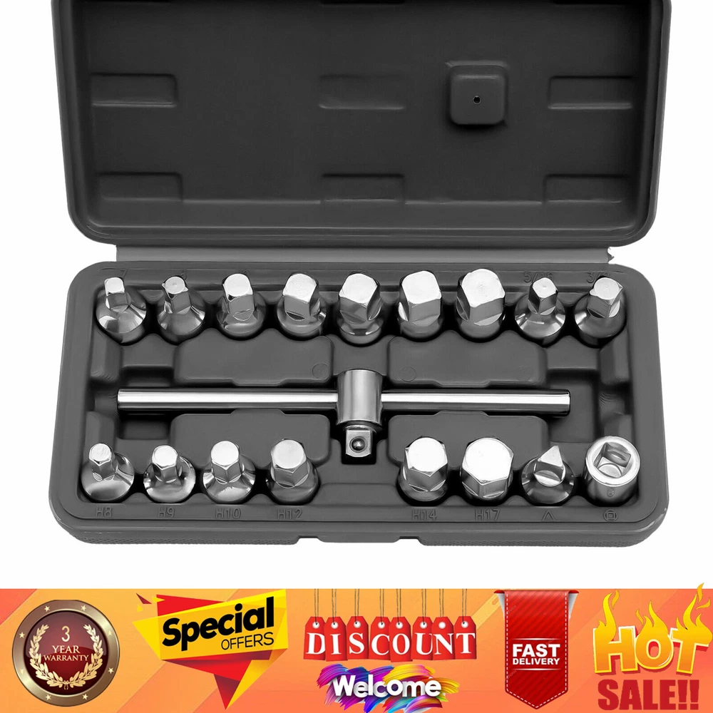 18PC Oil Drain Pipe Plug Hexagon Square Socket Key Removal Tool Set 3/8'' Drive 18PC Oil Drain Pipe Plug Hexagon Square Socket Key Removal Tool Set 3/8'' Drive Description 18pcs Hexagon Square Socket Set Oil Drain Pipe Plug Socket Key Removal Tool Set This Product Is Suitable for Disassembly and Replacement of Oil Drain Plugs, Gearboxes and Axles. with the Tool Kit, You Can Easily Combine Them for Disassembly and Installation. the 3/8" Sliding T-bar Can Be Rotated 360° and Change the Working Length to Provide Maximum Leverage and Effort. Feature: 1. Complete Configuration, Quick Disassembly and Installation; 2. the Material Is Chrome Vanadium Steel, Which Is Rust-proof and Durable. 3. Fine Polishing Process, Precision Polishing of the Sleeve, Surface Plating, Beautiful Appearance, Not Easy to Rust; 4. Surface Heat Treatment, High Hardness and Good Toughness; 5. the Set Includes 18 Sizes: Square Key Size: 7mm, 8mm, 10mm, 11mm, 12mm, 13mm, 14mm, 5/16", 8/3" Hex Key Size: 8mm, 9mm, 10mm, 12mm, 14mm, 17mm, Internal Square Size: 10mm Triangle Key Size: 8.5mm (from Corner to Opposite) 170mm 3/8" Sliding T-bar Sliding T-bar Size: 170mm Long; 3/8" Drive Box Size: 22cmm * 11cm * 5.5cm Package Included: 17 * Tube Plug Socket 1 * Sliding T-bar Description Payment Delivery details Terms of sales About us Contact us Payment We accept ebay payment 。 Fees such as import duties, taxes are not included in the item price or shipping costs. These charges are the buyer's responsibility. Delivery details Shipping: 2-9 working days to: USA Terms of sales We maintain high standards of excellence and strive for hundred percent customer satisfaction. Feedback is very important to us. We hope that you contact us immediately before you give neutral or negative feedback, so that we can address your concerns. It is impossible to address issues if we do not know about them! About us Your satis faction is our ultimate goal. We work hard to earn your trust and future business. Our certified technicians have tested each item before shipping. The unit comes with 1 year limited warranty on all manufacturing defects. a) If you receive a defective item, you may return it or ask for a discount. Please contact us within 14 days after you receive the package. b) What you returned must be intact and in its original packaging as re? u. Customer is responsible for shipping costs of the returned item. c) We will cover the cost of shipping back t with the shipping rate indicated in the registration page. We will send you a new unit or refund the full payment you paid. Thank you. Contact us Business Hour Business Hour: Monday To Friday: 8:30 AM to 5:00 PM (Beijing China time) Due to time zones, our reply to your questions may not be immediately. But within above working time, we will reply your email within 24 hours. If it's non-workdays, please kindly be patient and wait till Monday. Please contact us with ebay message. Please feel free to contact us if you have any questions. Monday To Friday: 8:30 AM to 5:00 PM (Beijing China time) Due to time zones, our reply to your questions may not be immediately. But within above working time, we will reply your email within 24 hours. If it's non-workdays, please kindly be patient and wait till Monday. Please contact us with ebay message. Please feel free to contact us if you have any questions. * Feature * Compact Design,Unique Appearance Festure 1 Stable performance,Safe to Use Country/Region of Manufacture Unknown Feature 2 Fast Shipping Tips If you have any questions, please contact us! *Festure 1 ❤Beautiful Appearance❤ Features ★Special Fashion Design★ OE/OEM Part Number Does not apply Manufacturer Warranty 3 Years MPN ( MPN ) n/a Feaures Convenient Use,Unique Appearance,Reliable Quality Highlights ★Good Quality Guarantee★ Tip If you have any question , please contact us Manufacturer Part Number Does Not Apply Brand Unbrand Type Oil Drain Pipe Plug Socket Set Colour silver Fitment Type Direct Replacement Classic Car Part Yes Set or Single Item Set Drive Size 3/8in. Size 7mm, 8mm, 9mm, 10mm, 11mm, 12mm, 13mm, 14mm, 15mm, 17mm, 5/16in. Number of Pieces 17 Tools Included Sockets, Sliding T-bar Socket Type square socket Drive Type sliding T-bar UPC Does not apply On Feb 19, 2025 at 23:36:28 PST, seller added the following information: