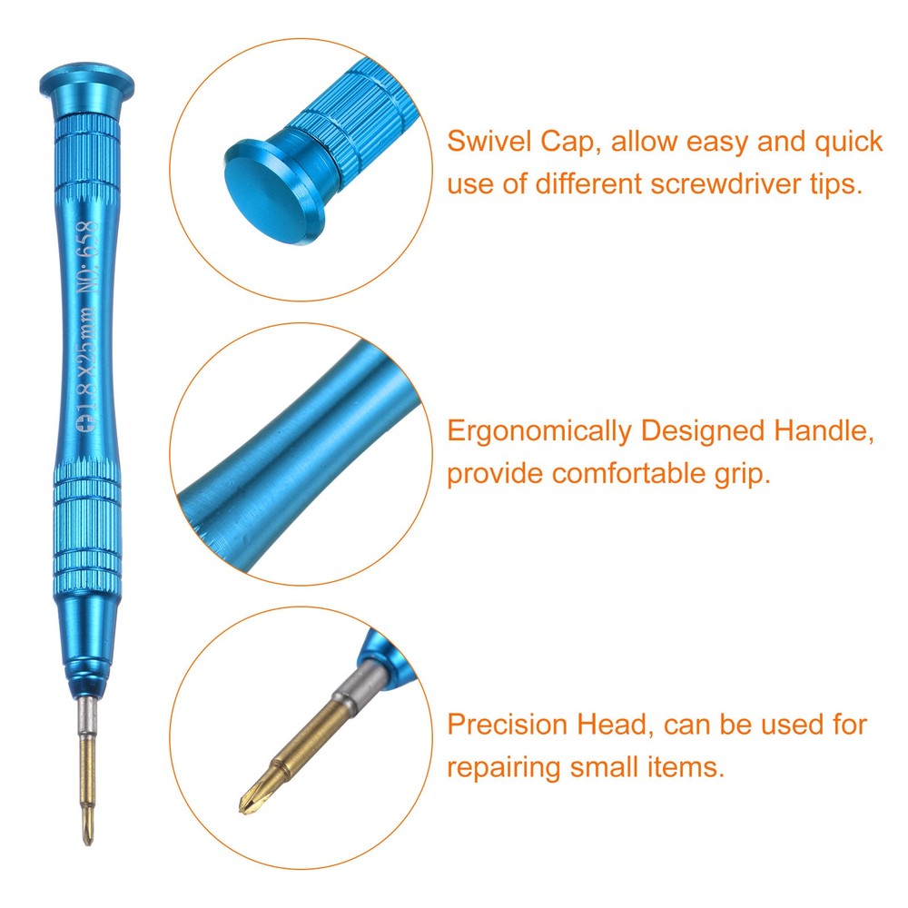 Document The mini magnet screwdriver is made of S2 material, a high-hardness material commonly used in hardware, good for electronic equipment.Ergonomic pen-shaped design aluminum alloy handle provides comfortable grip and excellent control.The tiny screwdriver has a swivel cap at the end of the handle to allow easy and quick use of different screwdriver tips.This small screw driver head features a magnetic design that holds small screws securely in place, preventing them from being lost or misplaced during repairs, allowing you to handle tiny components with precision and efficiency.This pen-style manual screwdriver is suitable for a variety of electronic devices and gadgets, such as repairing cell phones, watches, glasses, cameras, laptops, game consoles, keyboards and other electronic devices.Notice: To prevent damage to the screw and the drill, please do not attempt to turn screws with mismatched sizes. 1.8x25mm Precision Magnetic Phillips Screwdriver with Non-slip Handle, Blue The mini magnet screwdriver is made of S2 material, a high-hardness material commonly used in hardware, good for electronic equipment. Ergonomic pen-shaped design aluminum alloy handle provides comfortable grip and excellent control. The tiny screwdriver has a swivel cap at the end of the handle to allow easy and quick use of different screwdriver tips. This small screw driver head features a magnetic design that holds small screws securely in place, preventing them from being lost or misplaced during repairs, allowing you to handle tiny components with precision and efficiency. This pen-style manual screwdriver is suitable for a variety of electronic devices and gadgets, such as repairing cell phones, watches, glasses, cameras, laptops, game consoles, keyboards and other electronic devices. Notice: To prevent damage to the screw and the drill, please do not attempt to turn screws with mismatched sizes. Hot Item Payment 1.We accept eBay payment . 2.Payment must be received within 7 business days of auction closing. Shipping 1.We ship to your eBay or Paypal address. Please make sure your eBay and Paypal address is correct before you pay. 2.Items will be shipped within 1-3 business day when we received payment. 3.Delivery time depends on destination and other factors. Description Policy 1.8x25mm Precision Magnetic Phillips Screwdriver with Non-slip Handle, Blue The mini magnet screwdriver is made of S2 material, a high-hardness material commonly used in hardware, good for electronic equipment. Ergonomic pen-shaped design aluminum alloy handle provides comfortable grip and excellent control. The tiny screwdriver has a swivel cap at the end of the handle to allow easy and quick use of different screwdriver tips. This small screw driver head features a magnetic design that holds small screws securely in place, preventing them from being lost or misplaced during repairs, allowing you to handle tiny components with precision and efficiency. This pen-style manual screwdriver is suitable for a variety of electronic devices and gadgets, such as repairing cell phones, watches, glasses, cameras, laptops, game consoles, keyboards and other electronic devices. Notice: To prevent damage to the screw and the drill, please do not attempt to turn screws with mismatched sizes. Hot Item Payment 1.We accept eBay payment . 2.Payment must be received within 7 business days of auction closing. Shipping 1.We ship to your eBay or Paypal address. Please make sure your eBay and Paypal address is correct before you pay. 2.Items will be shipped within 1-3 business day when we received payment. 3.Delivery time depends on destination and other factors.