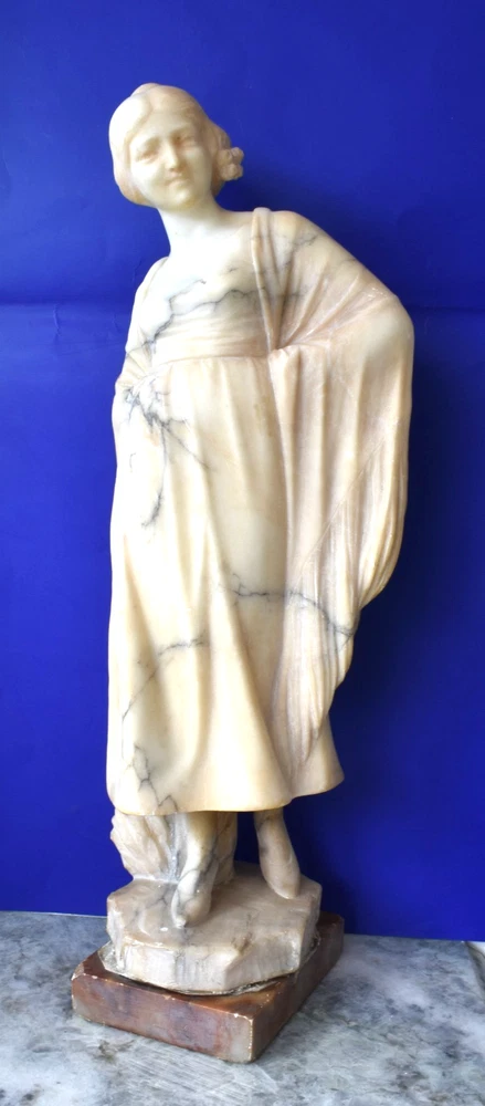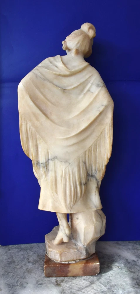 19" Antique Italian hand carved Alabaster Marble Beatrice from Dante maiden statue figure sculpture! Nice flat back depth for shelf or mantle display. Beautiful veined stone, 19" tall x 7" across back, no chips or restoration to Beatrice. Chips to marble base may be a very old replacement? Thanks for considering my listings today, I'll strive to exceed expectations on your Purchase. Please check my feedback of 10450 positives, selling for over 28 years on ebay, before that the rest of my life :^). Hope you will check and bookmark my listings for new items listed daily!