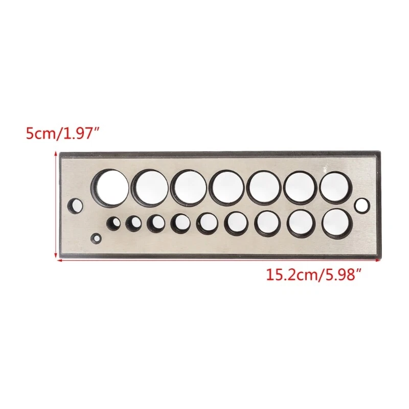 Features: The steel dowel plate maker has 19 sizes of holes in 32 increments. Size from 8 to 5/8", which contains: 8 5/32",3/16", 7 32 4 9/32",5/16",11/32", 3/8“, 13/32", 7/16", 15/32", 17/32", 9/16",19/32", 5/8". Each steel dowel maker is with 2 discharge holes and 2 to make the dowels plate easier and stable fix on the platform or woodworkers bench- with bench- holes. Made of high quality-precision chromium steel for long lasting durability. Compatibility: Make dowels from hardwoods, softwoods and so on, after multiple cutting, you will get correct size for the dowel required. Specifications: Size:approx15.2x5x1cm/5.98x1.97x0.39 Material:Chromium Steel Weight:400g Holes: 19 holds in 32 increments Holes Size: 8 5/32",3/16", 7 32 4 9/32",5/16",11/32", 3/8“, 13/32", 7/16", 15/32", 17/32", 9/16",19/32", 5/8" Package Includes: 1PC Steel Dowel Plate Maker note: Due to differences in lighting and screen settings, the color of the product may be slightly different from the picture. Due to different manual measurements, please allow slight size differences.
