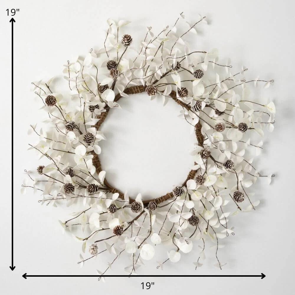 19 Inch Eucalyptus and Cone Wreath Christmas Artificial Wreath Winter Wreath