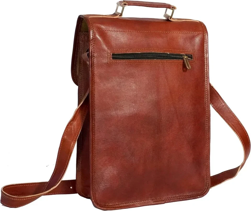 Item Description:- Material- Real Goat hide Size- 11"(h) 9(W), 1 Front pockets, Green color strong canvas lining. Adjustable shoulder broad strap. Real Brass metal accessories used in this Bag. Made by professional and experienced artisans from Rajasthan. Treated by natural ingredients. Natural leather smell will go away within few days from the usage of this bag. Eco friendly and weather resistant. Green canvas fabric Internal 2 compartments and 2 zipper 1 small pockets on front of the bag Back side 1 zipper Thick adjustable strip SIZE: 11 (long) x 9 (wide) x 3 (deep) Strong, light-weight goat leather, tanned without the use of chemicals Leather softens and darkens with use Color and texture of the leather varies Natural real leather smell, just like a luxury car or lounge suite Solid brass buckles and fixtures - will last for years Has a wonderful natural look, and feel Each bag is uniquely individual due to slight color and marking variations on natural leather Brand New Handmade Leather Bag without tag
