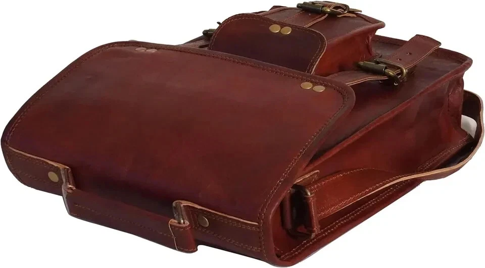 Vintage 20" Leather Laptop Backpack Spacious Messenger Shoulder Bag