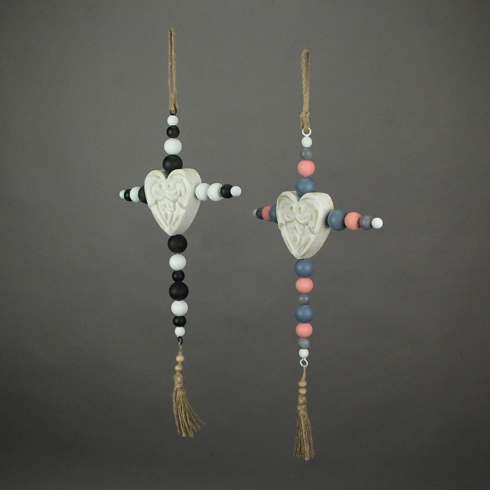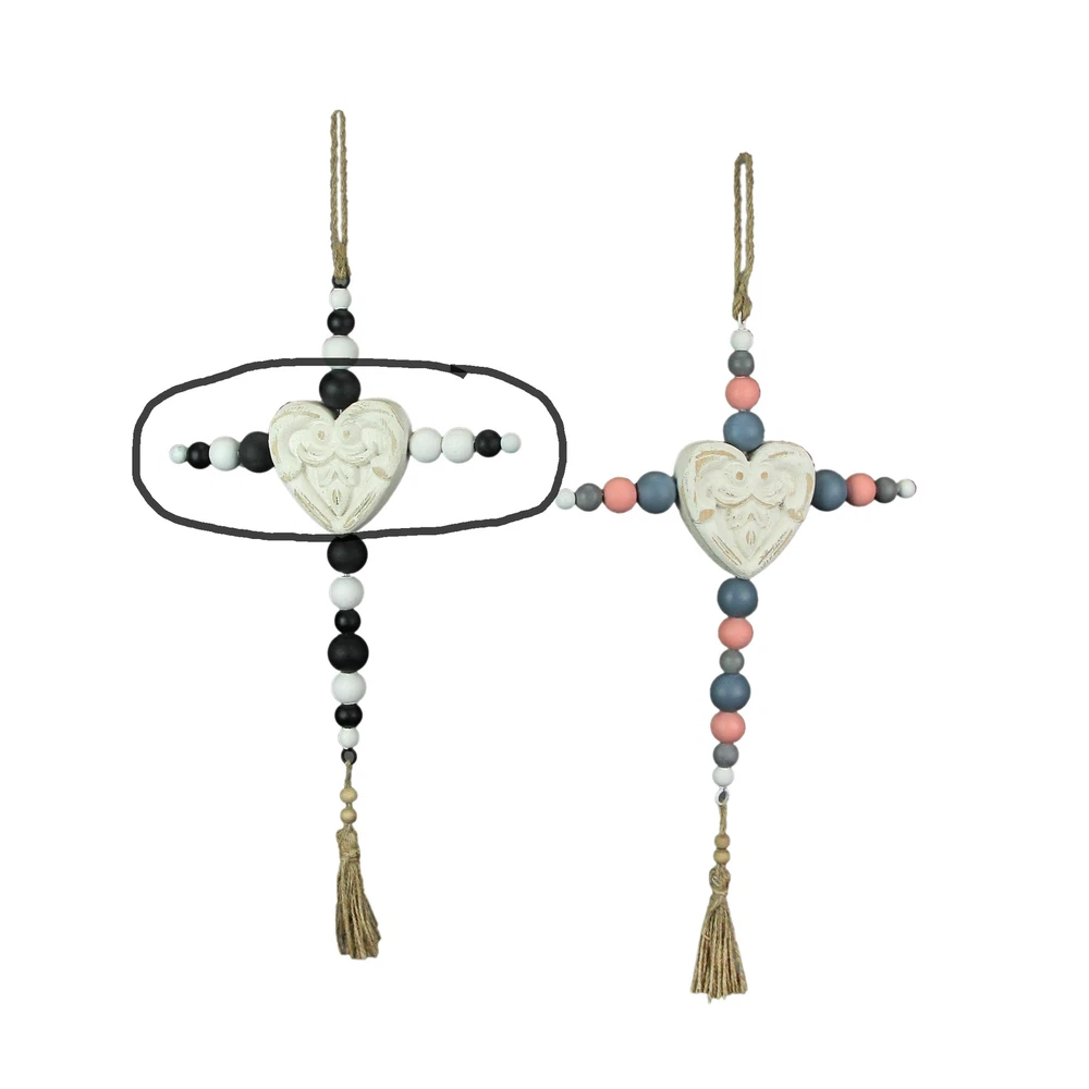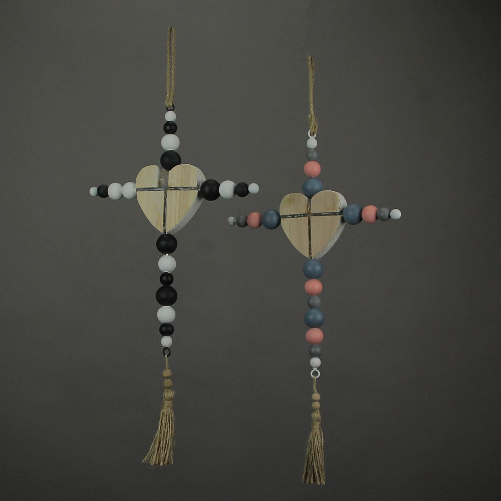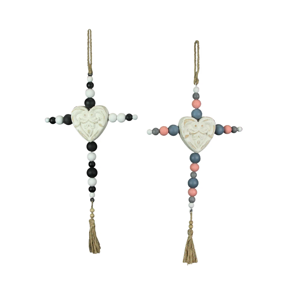 19 Inch Wooden Bead Cross Wall Hanging Home Decor Modern Decorative Art Set of 2