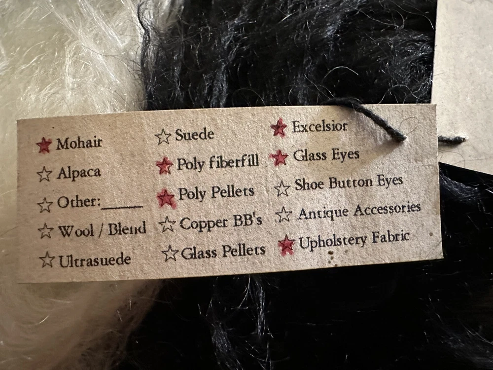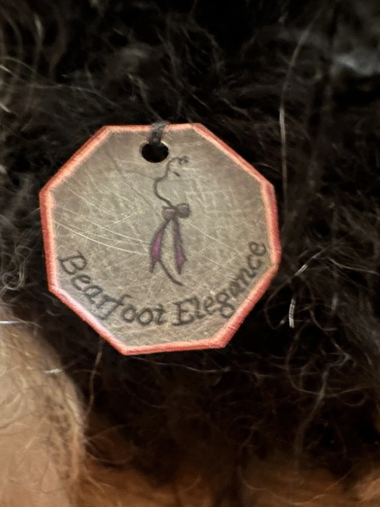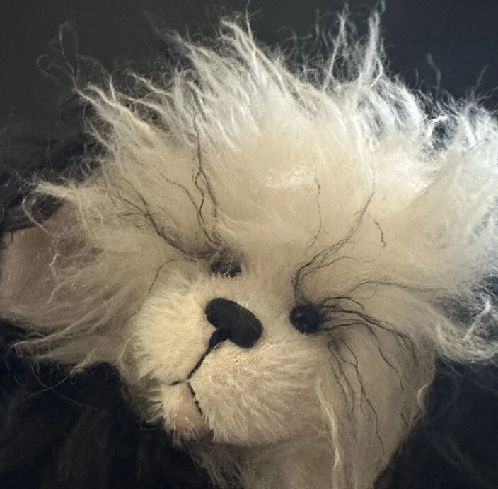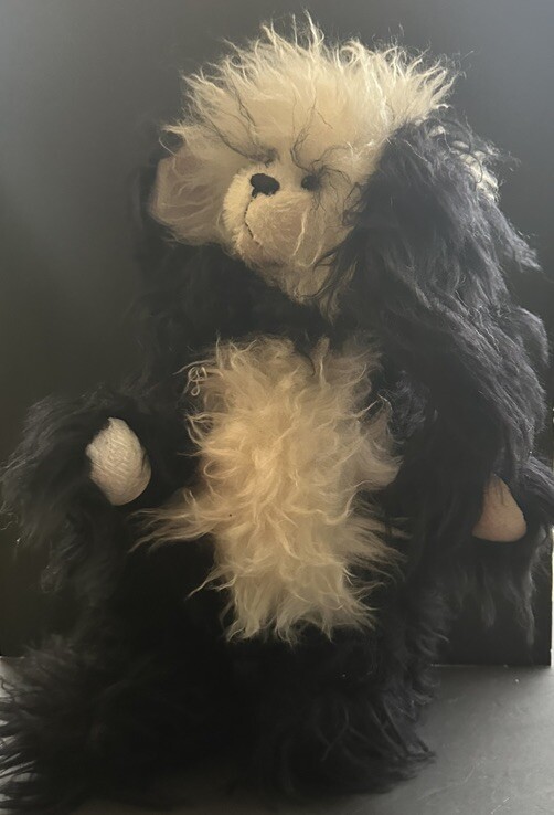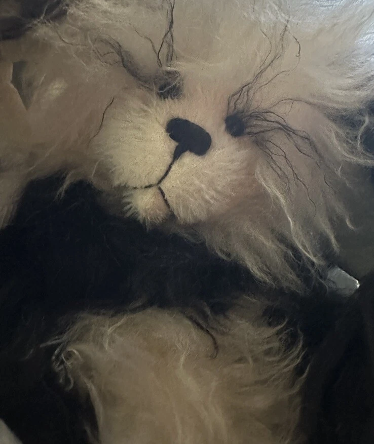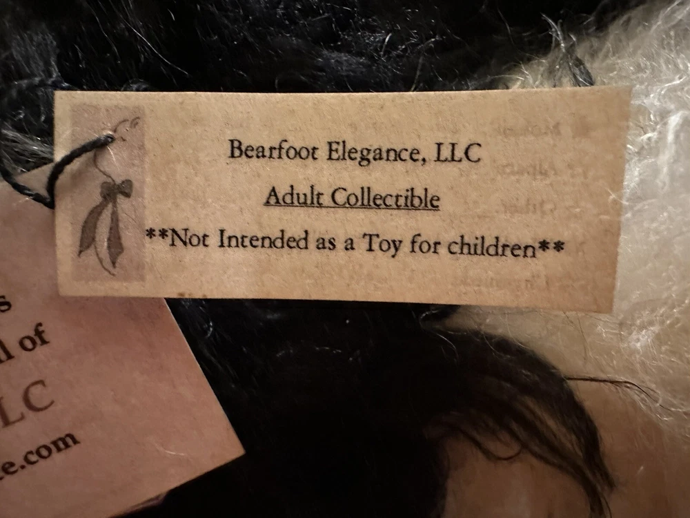 It’s a mohair Rabbit Panda Bear!!! “Tibbar Adnap” is Rabbit Panda spelled backwards! This design is one of only 11 made; this is number 11! This rabbit/bear was a Nominee in 2003 for Best Artist award in the US Teddy Bear Artist Competition. It’s a handmade custom designed bear by sisters Janelle Bruchu & Michelle Mitchell. There was only 11 of these made and this is number 11. I purchased this beautiful bear from them personally at a bear convention. This bear is gorgeous. It is 19” long and weighs almost 6 pounds. Made of mohair, poly fiberfill, poly pellets, excelsior, upholstery fabric & has glass eyes. This is an adult collectible and is from my personal collection.