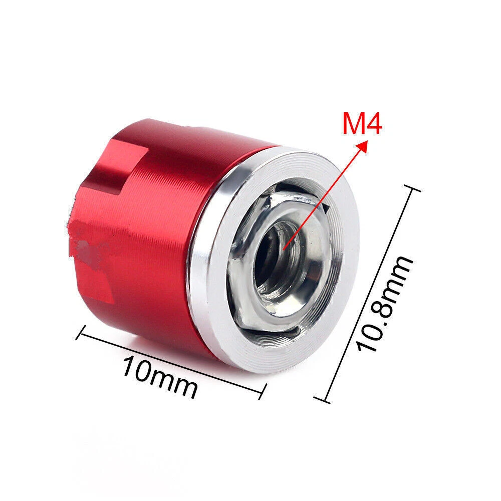 Product Description If you have any questions, please contact customer service first, do not open disputes easily, thank you! Features: CNC metal machined Inserted M4 locknut Equipped with hex wrench, easy to install Specifications: Material: Aluminum Alloy Quantity: 4Pcs Color: Black / Red Size: 10.8*10mm Weight: 8.8g Inserted Nut: M4 Suit for: 1/10 RC Crawler Car Package includes: 4* M4 Wheel Lock Nuts 4* Wheel Nut Caps 4* Spacers 4* Orings 1* Hex Wrench About Us We accept all payments authorized by eBay. powered by
