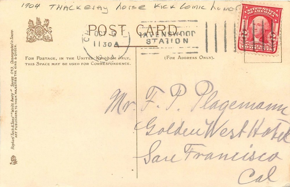 A Vintage postcard as described in title, additional info is below--postmark on front of postcard Publisher-photographer--Artist---Tuck card #----- 643