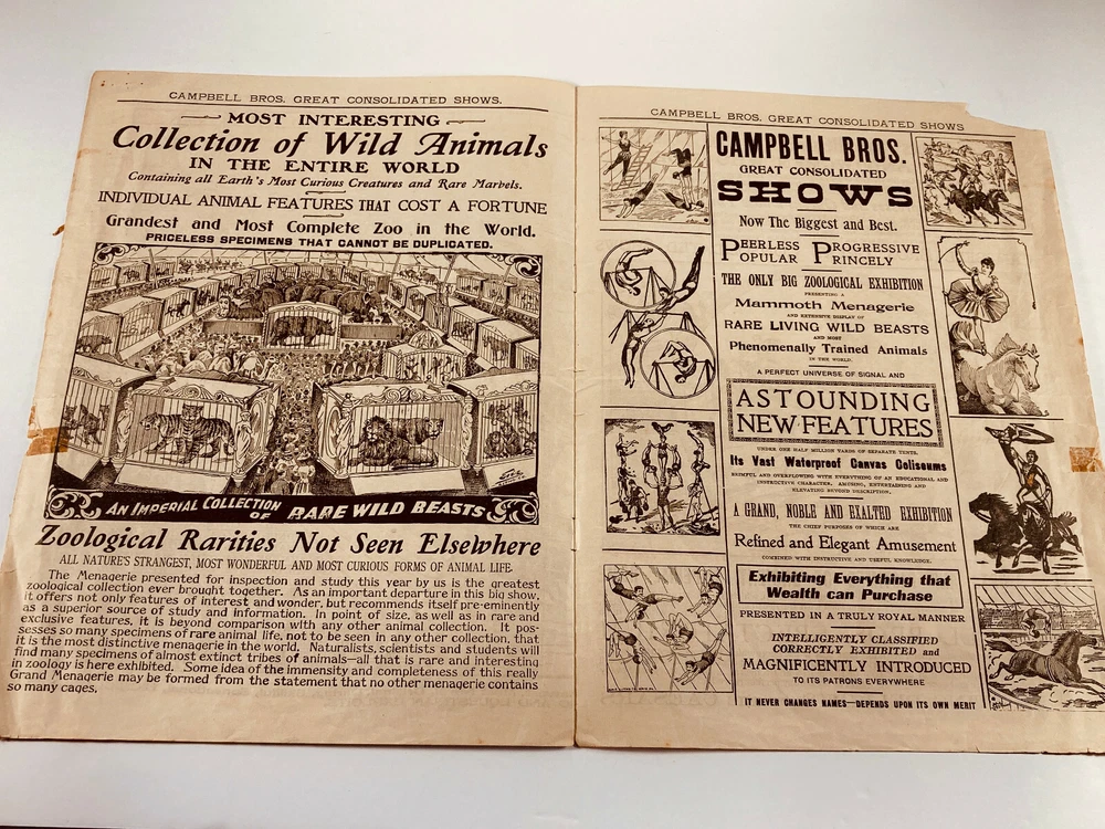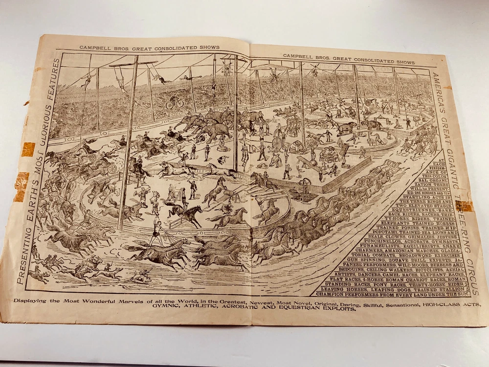For sale is this WONDERFUL item from a life-long collection of vintage Carnival and Circus posters and large format programs from the early 1900's through the 1950s and 60s. We take great pains in having bright, clear photos. They are a large part of the description. Make sure you look closely at the photos to determine condition. All hage age, wear, some have rips, tears, folds, creases, age. Many of these items are RARE and beautiful. We've recently purchased AMAZING circus and carnival items from the life long collection of Gary Bart. Very rare items! See pics. Ask questions. STORE POLICIES Please look closely at the item photos. Our photos are the best indication of condition. Please ask questions. All of our items are sold AS-IS. We don't break our lots, with peace and love. No returns. All of our items are listed as found! All offers considered, first reasonable offer accepted! All of our shipping charges include full insurance and tracking. We reserve the right to adjust the mode of shipping. Canadian customers should contact us for exact charges . We take pride in our positive feedback! Please contact us with any issues. We ship all items within 3 business days. Larger items may take longer.
