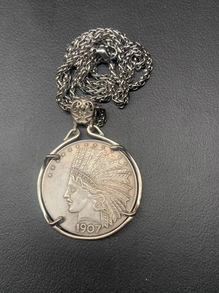 Vintage Morgan Dollar Pendant with Silver Plated Decorative Coin for Friend's Gift County:China Condition:New(Not Original) Type:Numismatic Material:Brass Edge:Reeded There will be errors in each color when treated as old,please undearstand Notice: Embrace the historical elegance with the 1907 YukaBa MarshLing Antique Liberty Indian Head Silver Coin Pendant necklace. A splendid piece for numismatists and history aficionados alike, this necklace features a coin pendant that carries the legacy of the Indian Head design, symbolizing the rich cultural heritage of the United States. Crafted with a classic gold tone, the necklace adds a touch of antiquity to any outfit. The coin's intricate engravings and the lack of a central stone highlight its authentic charm. This unbranded necklace is a testament to timeless style and historical value, originating from China, and is sure to be a conversation starter. if you have any question send us a message as fast as you can and we will answer as fast as we can, usually within 1 day or in the same day, we are working very hard to insure that you buying experience is extremely good and this is why we have such a fast response time, our handling time is also very fast, 1 day or the same day. please note: Notice we strive for 100% customer satisfaction, so if you have any problem with your order or any questions. please contact us first and don't give us a bad review right away. it's the best and fastest way to resolve any problem you may have. we will also do our best to solve any problem. thank you so much for reading!!