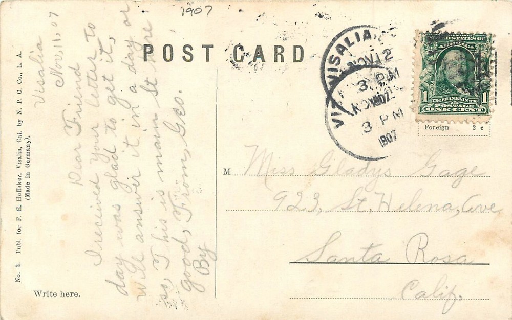 A Vintage Printed postcard as described in title, additional info is below Publisher-photographer--Artist---Huffaker card #----- 3 All our cards are shipped in either, a card stiffened envelope, or packages valued at $24.99 and up will be in a Rigid Shipping Envelope.