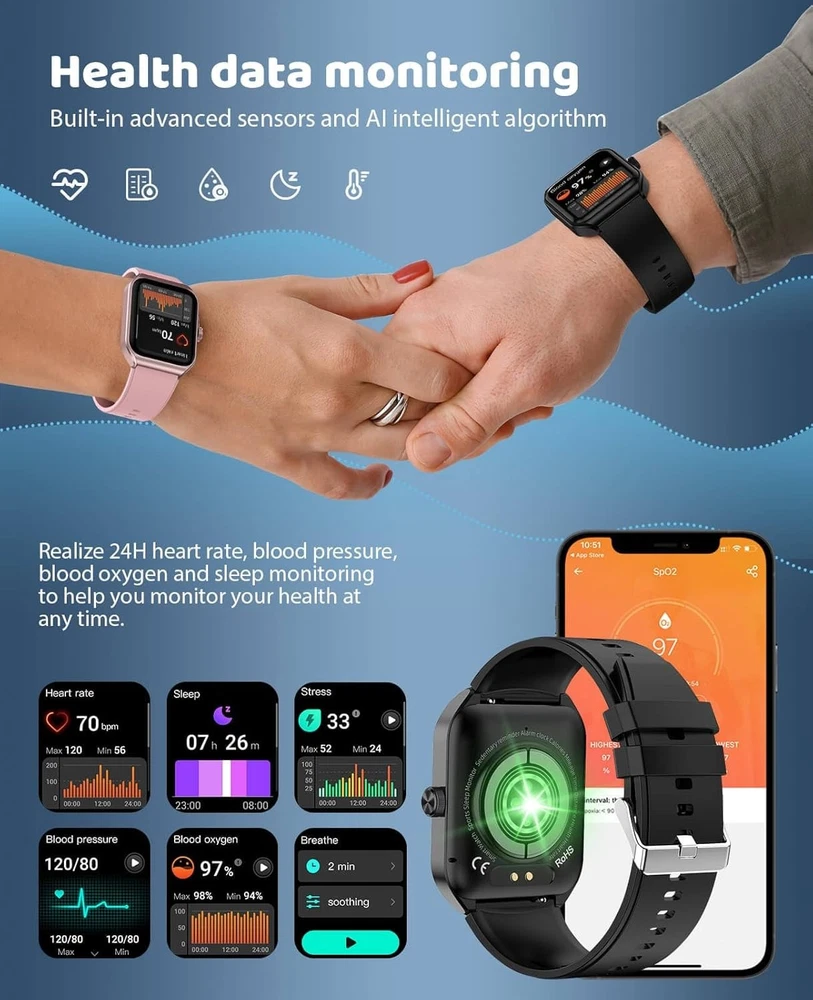 Absolutely love this smartwatch! The 1.91" HD screen is crisp, and the blood oxygen tracking is super handy. Voice control works flawlessly, and dual Bluetooth keeps me connected without my phone. Perfect for workouts and daily use—sturdy, stylish, and packed with features. A must-have for anyone wanting a reliable fitness companion!