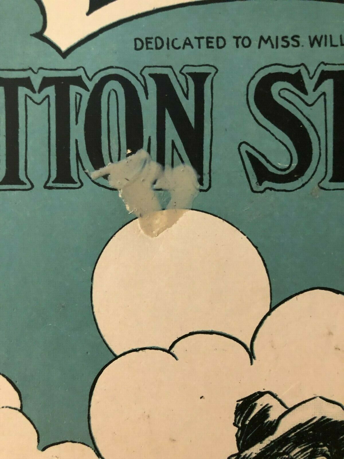 10 1/2"x 14" with minor wear, few small edge tears and creases and a small bit of paper adhered to cover by the word "Cotton". Shipping $6.00