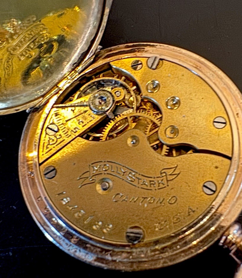 You’re Considering a 1912 HAMPDEN MOLLY STARK Pocket Watch Hunter Case 7 Jewels. Size 0 Works Great. Push lever pops open face. Beautiful. Shipped securely.