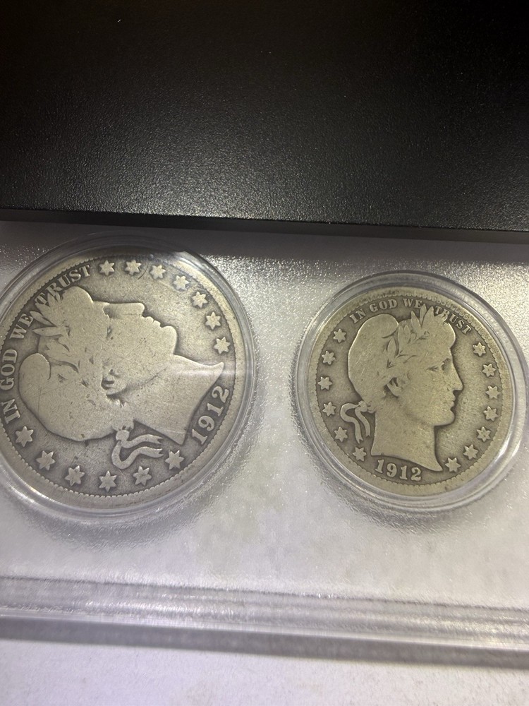 The 1912 Hand Collated Barber Silver U.S 5 Coin Set includes three 90% silver coins minted by the U.S. Mint in 1912.