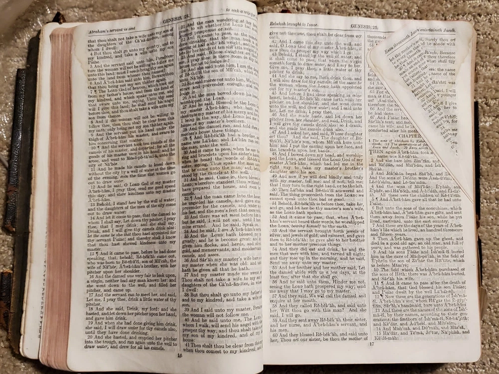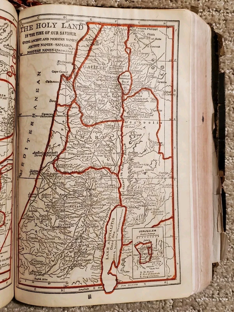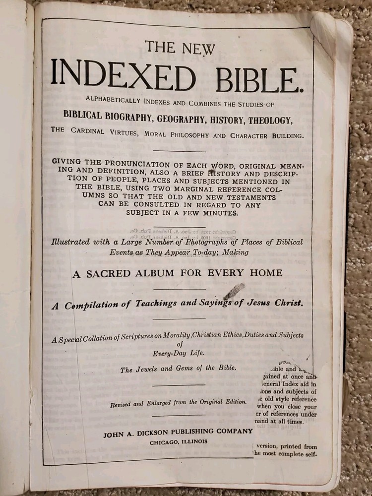 Vintage Bible. Leather is flaking. Some wear and tear to pages. From the home of a retired minister.