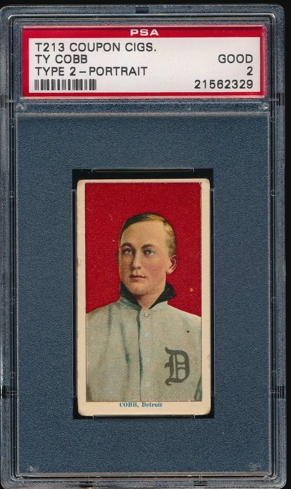 1914 T213 COUPON TY COBB RED PORTRAIT T206 PSA 2 ONLY 40 TOTAL PSA GRADED!! Talk about a pre war rarity! PSA has graded only 40 total examples of this Ty Cobb. Of those 40, 22 of them are "1's or A's". That leaves 18 at this grade level or higher. Cards like this have been getting noticed in the hobby and are starting to pick up in both demand and price. Grab this one while it is still affordable and available!