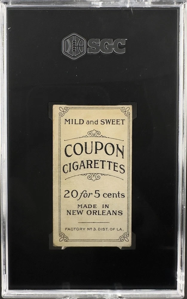Our personal favorite card - an absolutely stunning and very rare 1914 T213 Ty Cobb Bat off Shoulder with a Coupon Cigarettes back. Graded SGC 4 - Vg-Ex. Out of a total combined population (PSA and SGC) there are only 110 of these Cobbs in existence and NONE are graded higher than this (there are five 4's). This is just a spectacular card to hold in person with BRILLIANT colors and the best image quality possible. The "Cobb, Detroit" in blue is unique to the T213's and really sets the card apart from the much more common T206 issues. Corners show wear consistent with the grade and it's centered just a bit o/c left to right. Nearly one of a kind here. A real centerpiece "blue-chip" HOF card of one of the best players in history and member of the inaugural HOF class of 1936! SGC population of 4 with only none graded higher. Free First Class Mail shipping within US or to authenticator. Welcome to Meg Cards - a store borne out of a love of collecting mostly vintage baseball cards. Our main focus is on pre-war legends but we could have almost anything available from time to time. We're not looking to be the largest seller but to have fun and do things the way we'd like to see. For example we won't list a card as a "PSA 4" with one photo and no description. Not all 4's are equal so we will do our best to tell you (and show you) WHY it is a 4. We're not going to have 1000's of listings but just a few at a time and give those our attention. Like most collectors we try to seek out some of the undergraded or higher eye-appeal card. We'll have some true rarities and more commonly traded cards. And why "Meg Cards"? Our other collecting love and main business is selling fossilized megalodon shark teeth. Please see our other store below - on eBay for over 25 years now! https://www.ebay.com/str/benedeni - eBay Store for Fossil Shark Teeth https://www.ebay.com/str/megcards - eBay Store for Meg Cards Thank you for stopping by and hope to deal with you soon - Meg Cards