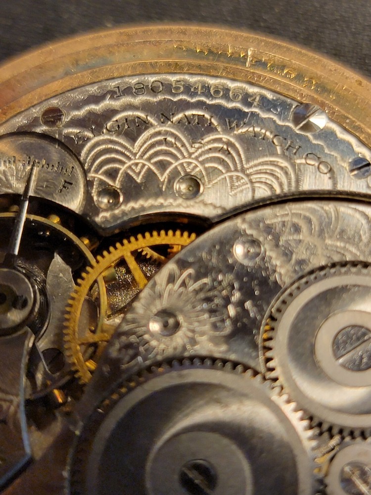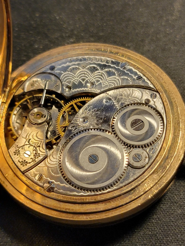 The 1915 Antique Illinois pocket watch with an Elgin movement is a rare and valuable piece of vintage timekeeping history. This men's pocket watch features a yellow gold case with a white dial and 7 jewels, reflecting the craftsmanship of the early 1900s. The Elgin movement inside ensures accurate timekeeping, making it a prized collector's item for watch enthusiasts and history buffs alike. It has been in my family for over 100 years and given to me about 20 years ago.