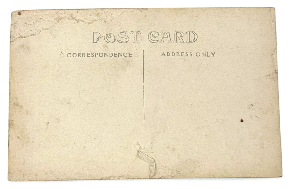 Authentic real photo postcard showing the 6th Company of the U.S. Marines encamped in Port-au-Prince, Haiti during the 1915 occupation. Uniformed soldiers, tents, and an American flag are clearly visible in this historic RPPC, captioned in white ink. A compelling image of U.S. military presence in the Caribbean with original period wear that enhances its authenticity.